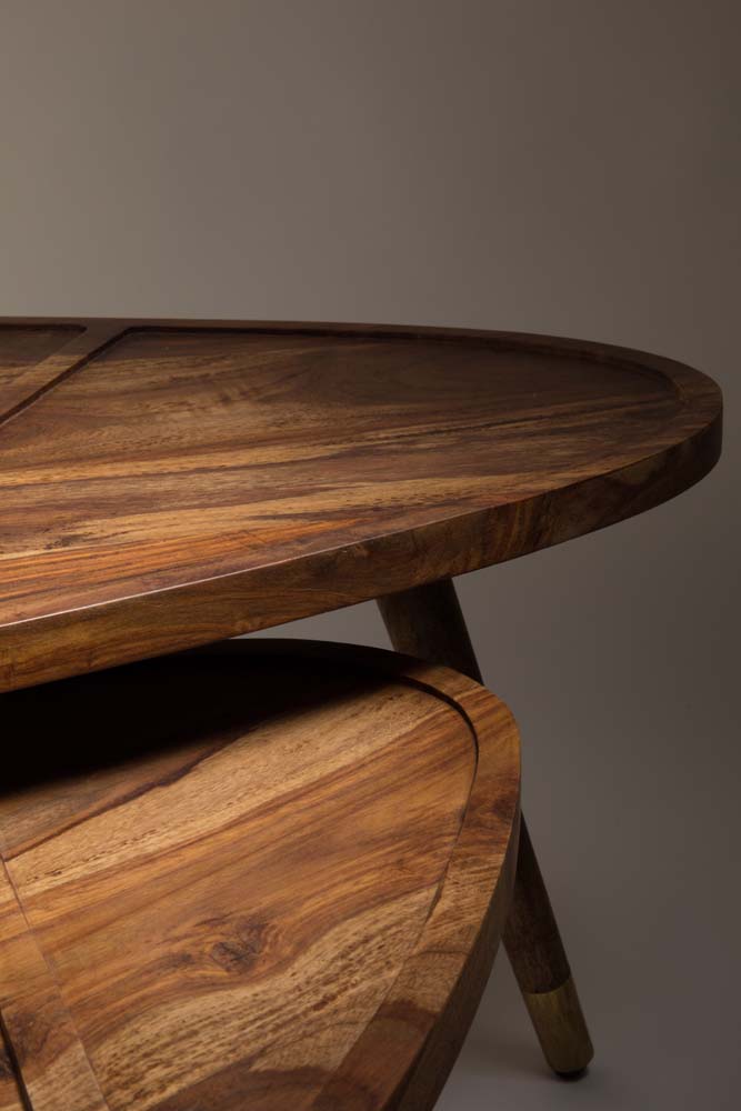 - Solide sheesham Holz, PU lackiert. Feet teilweise mit Weichstahlblech in Messingfarbe bedeckt.