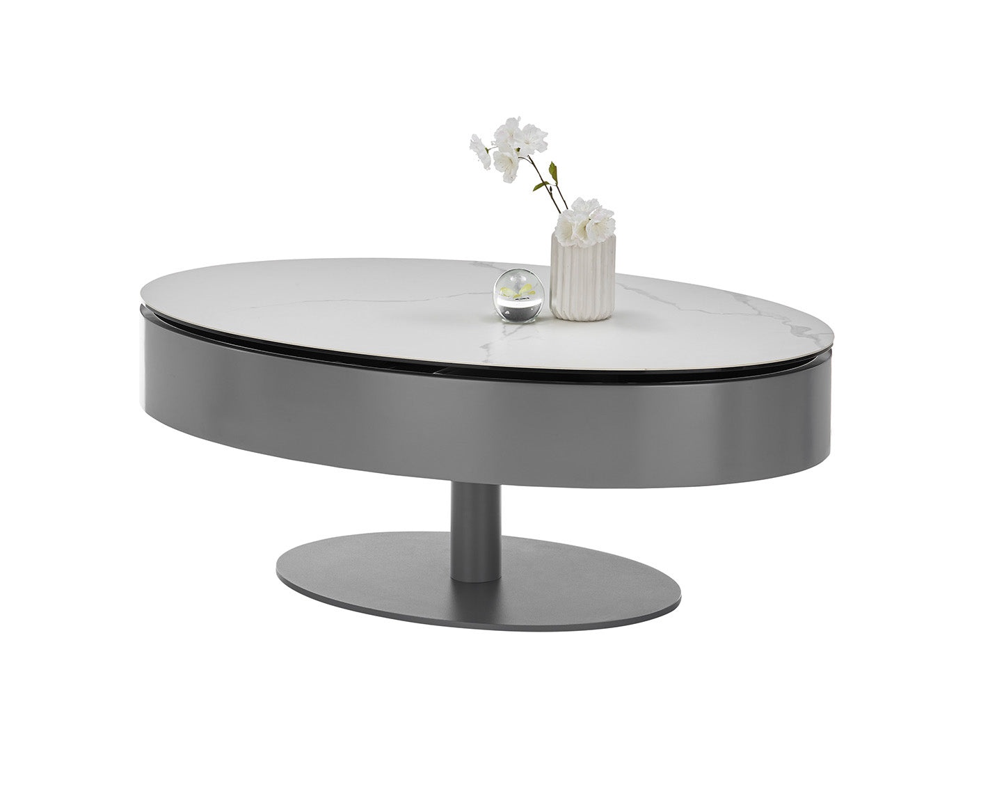 Sinisa Couchtisch oval Aufdrehbar, 110x70 cm Keramik Weiß