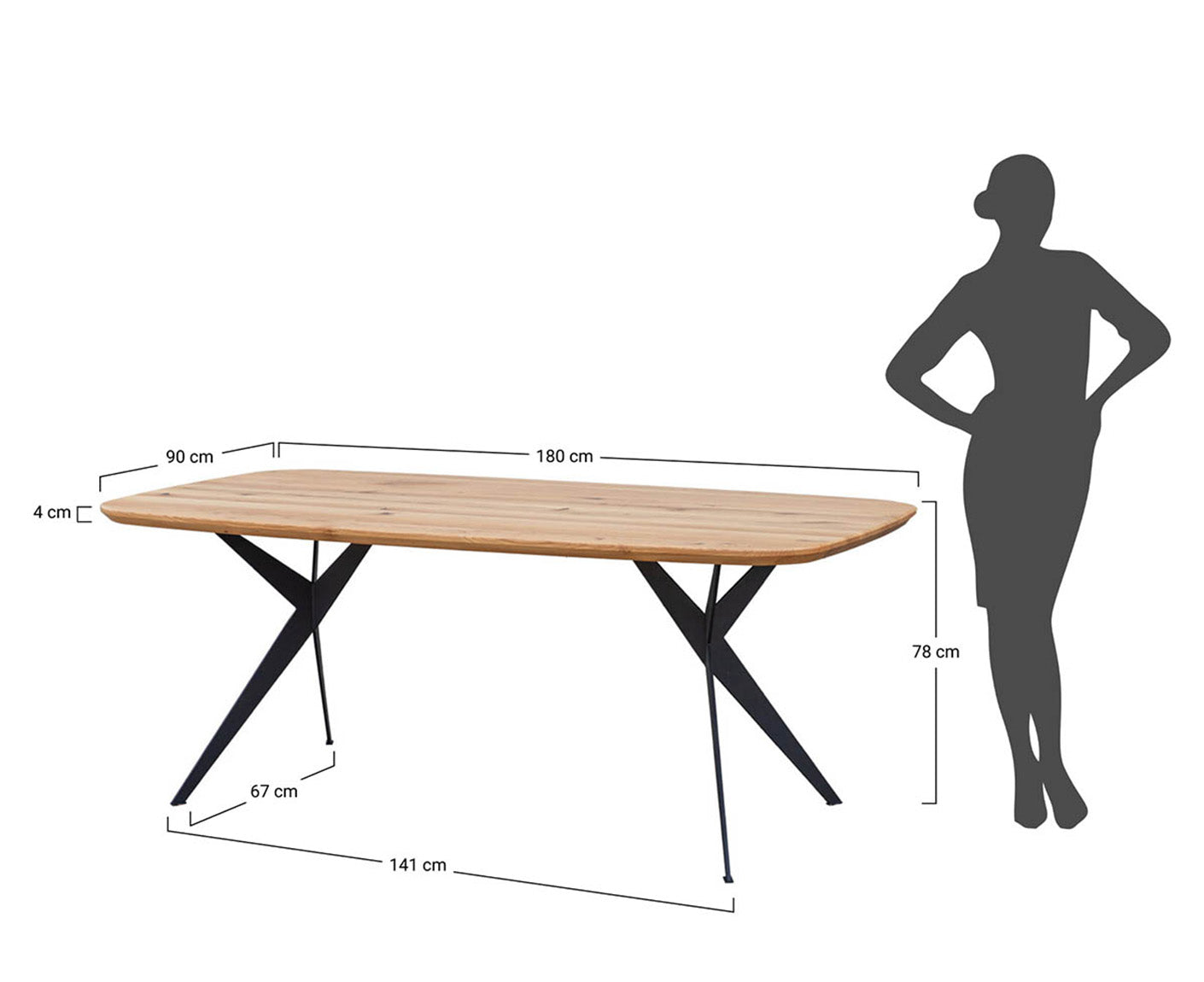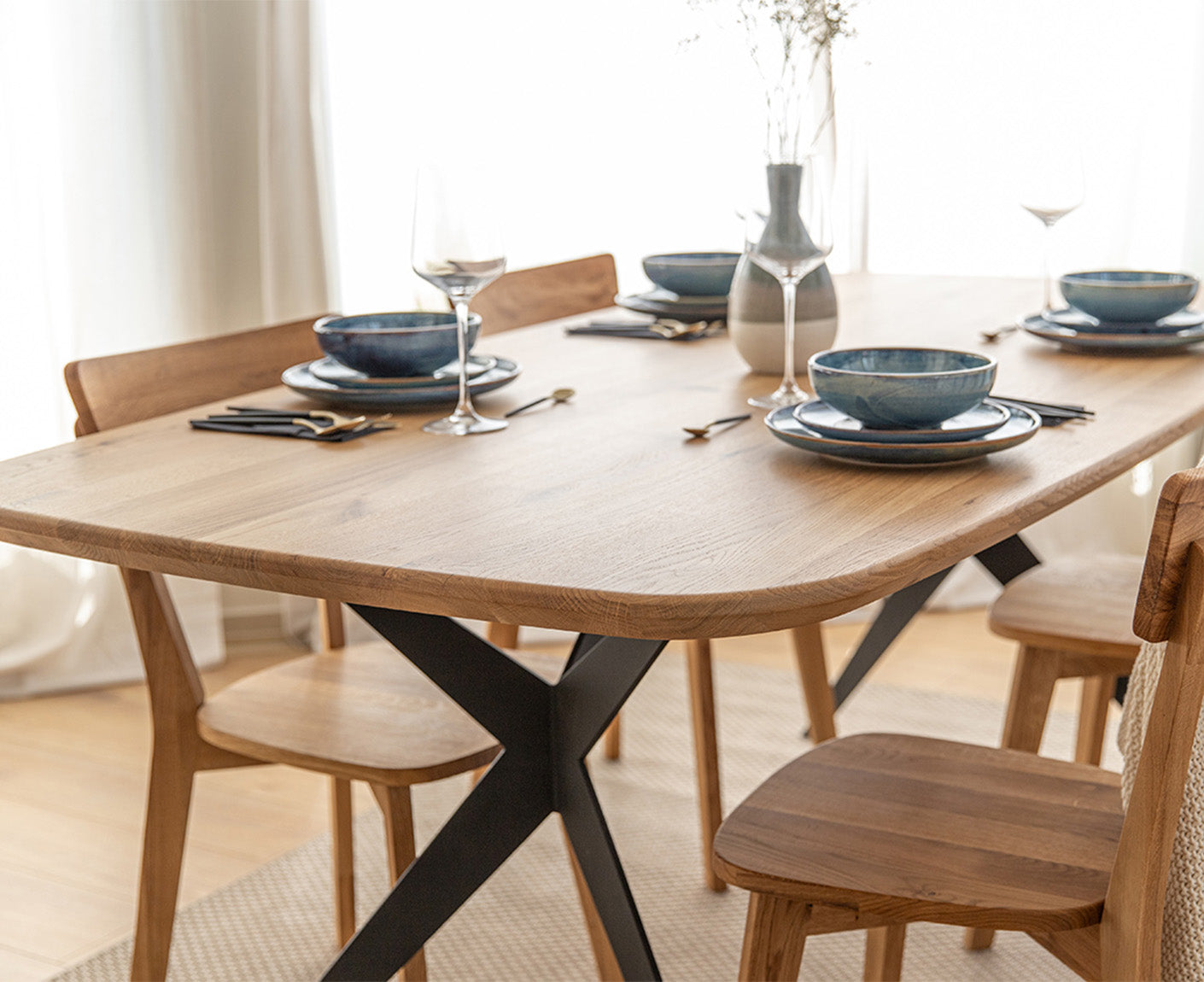 Sistina Esstisch Massivholz Eiche Natur / Schwarz