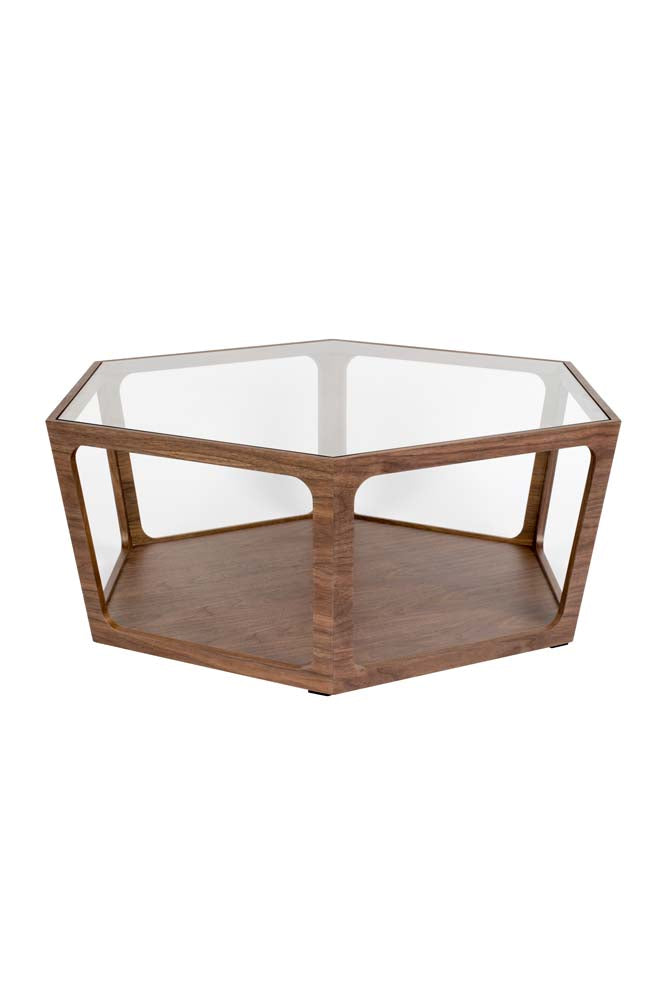 Sita Kaffeetisch mit Glasplatte Walnussholz Braun