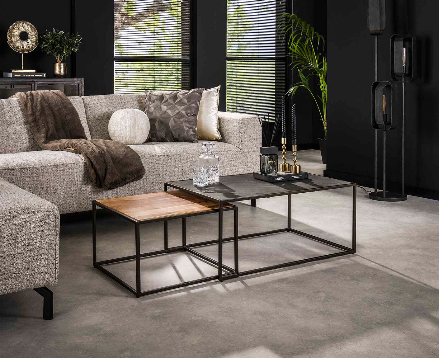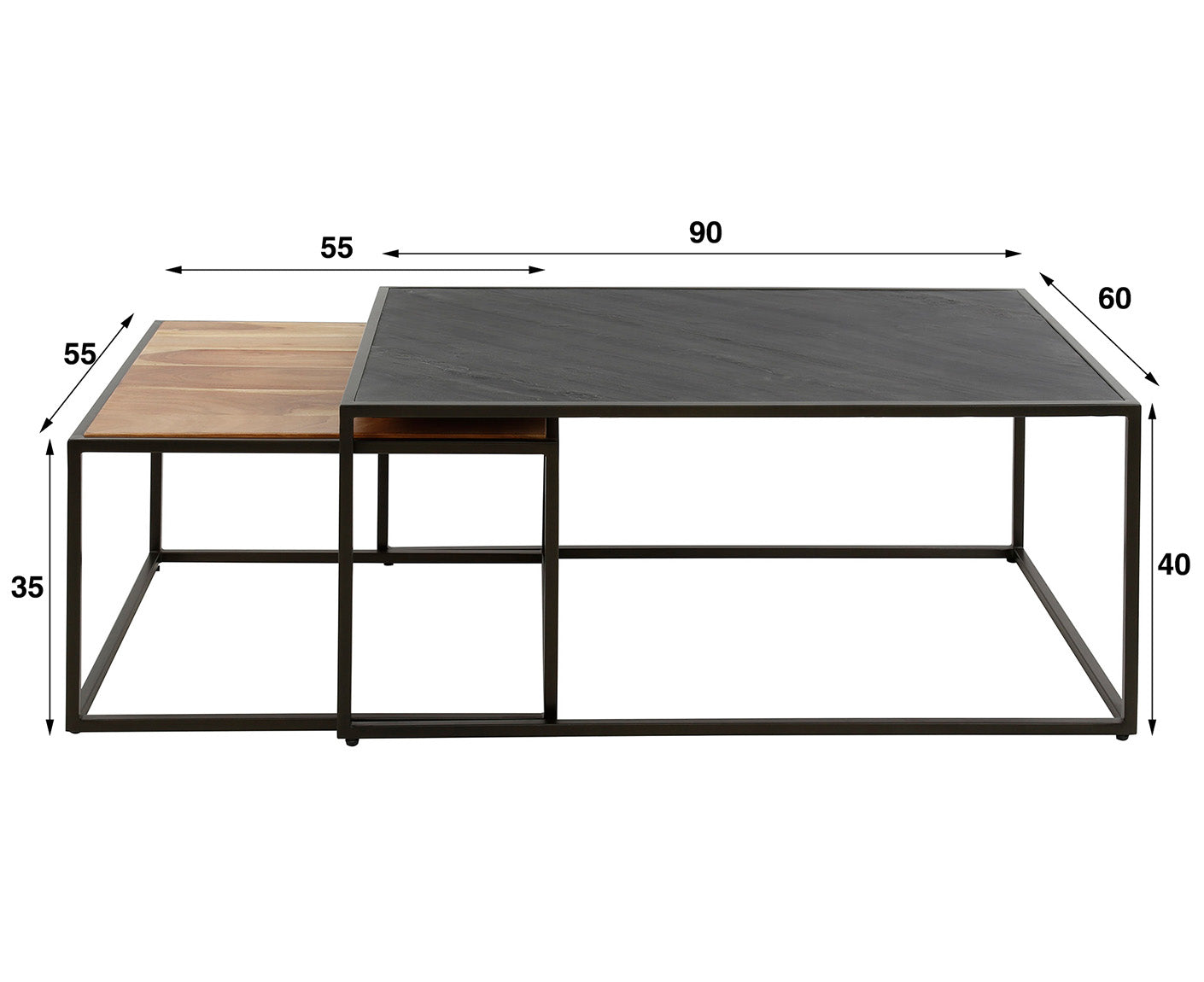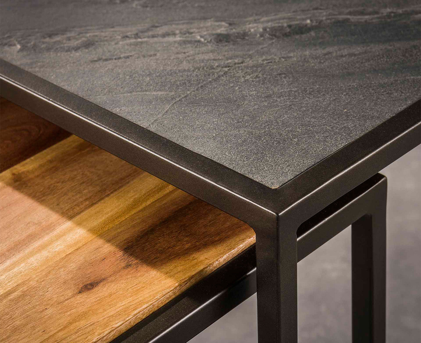Slate Mix Couchtisch 2er Set Akazie Massivholz / Schiefer