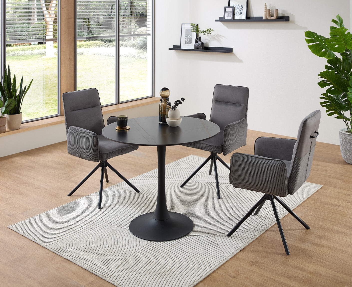 Solea Armlehnenstuhl 2er-Set drehbar Samt / Cord Grau