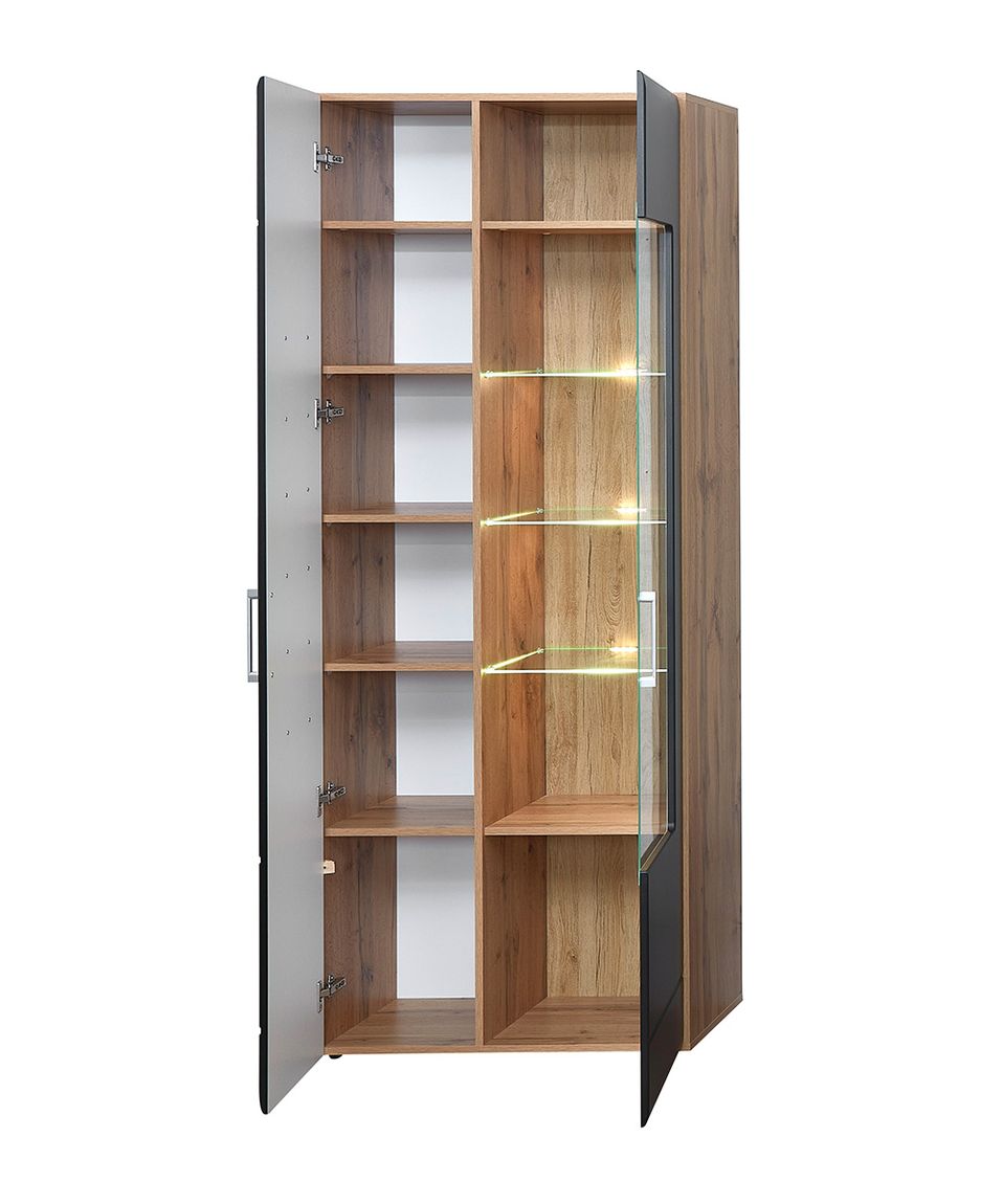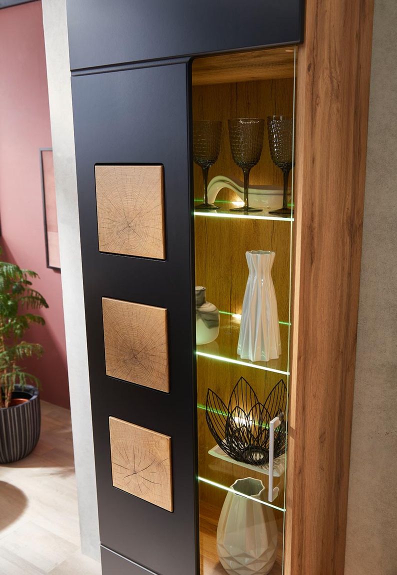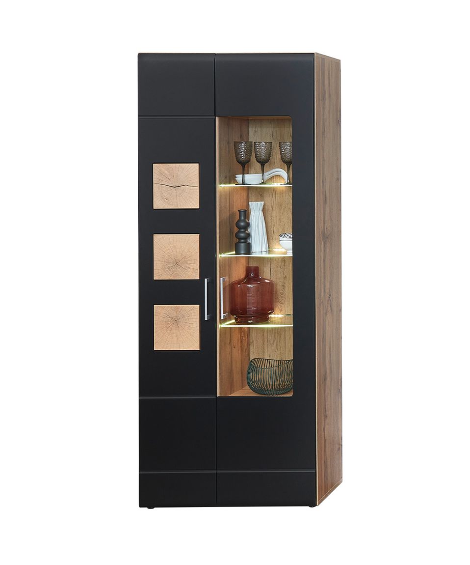Sonate Vitrinenschrank inkl. LED-Beleuchtung Schwarz supermatt / Hirnholz