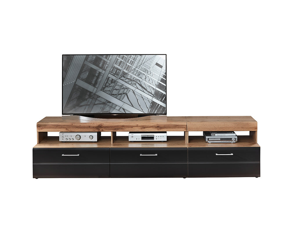 - Front: Lack Laminat Schwarz supermatt MDF mit Abs. in Hirnholz Nachbildung