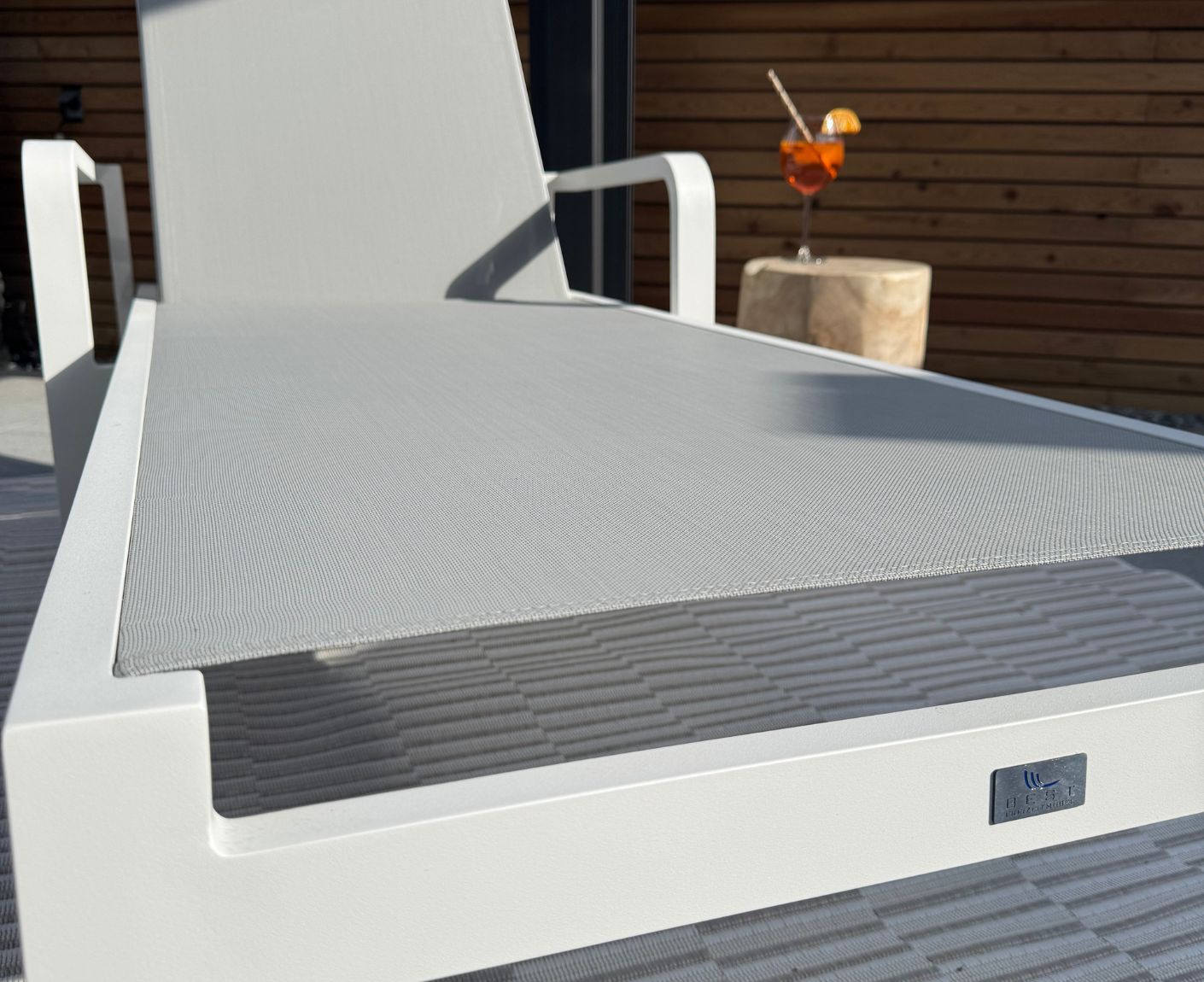 - der Bezug besteht aus einer Bespannung aus reißfestem und atmungsaktivem Ergotex-Gewebe