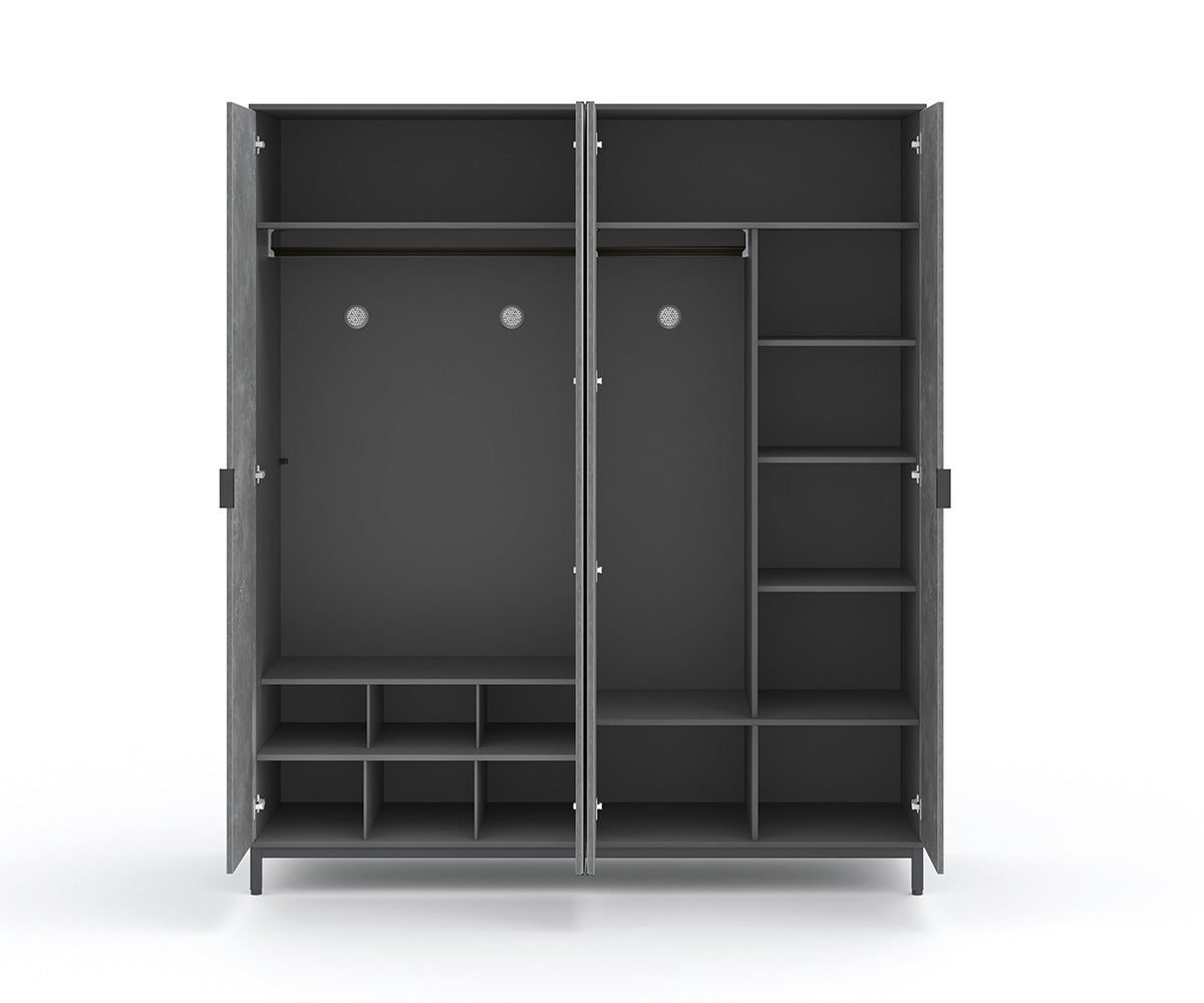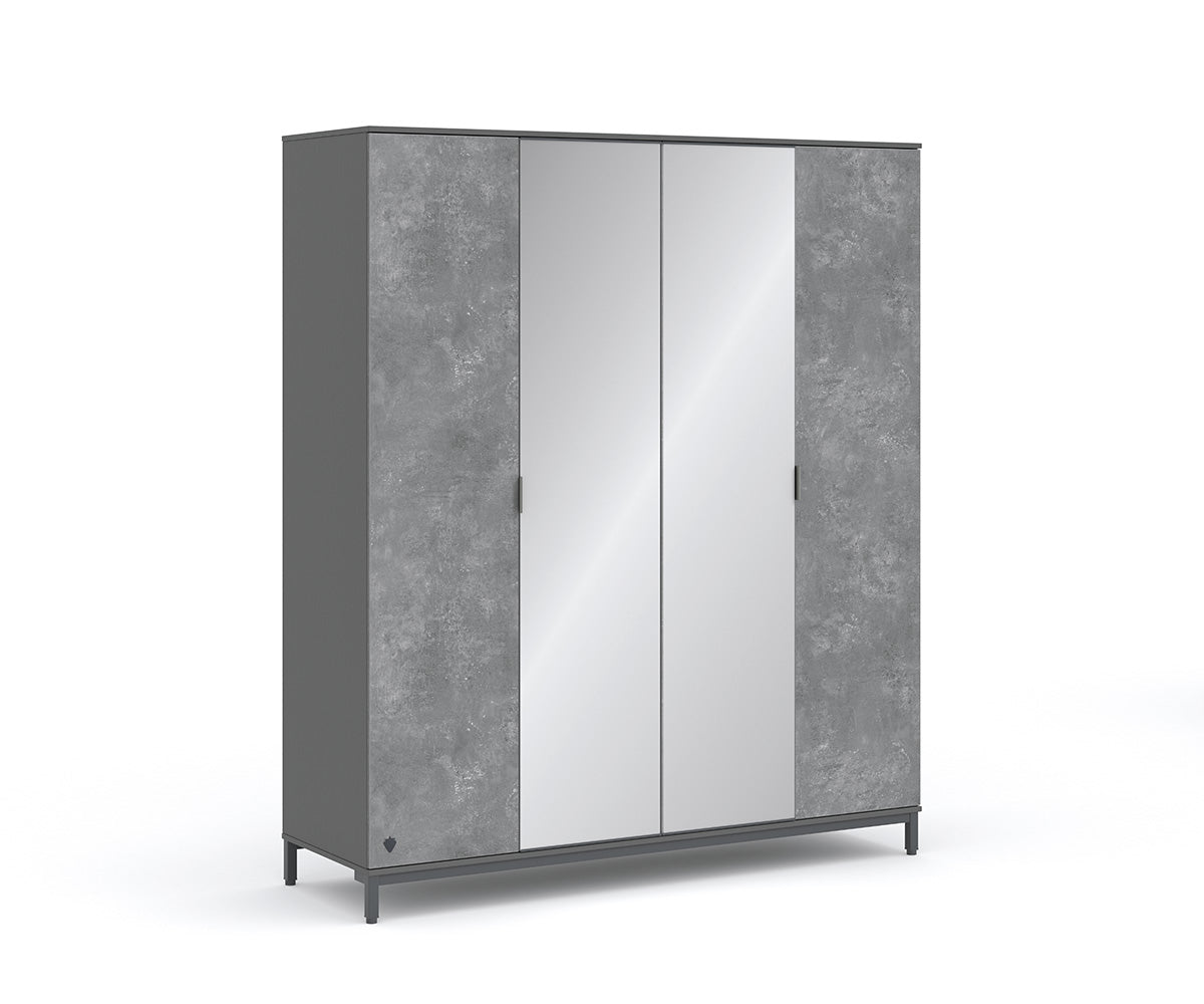 Space Gray 4-türiger Kleiderschrank mit Spiegeltüren Grau