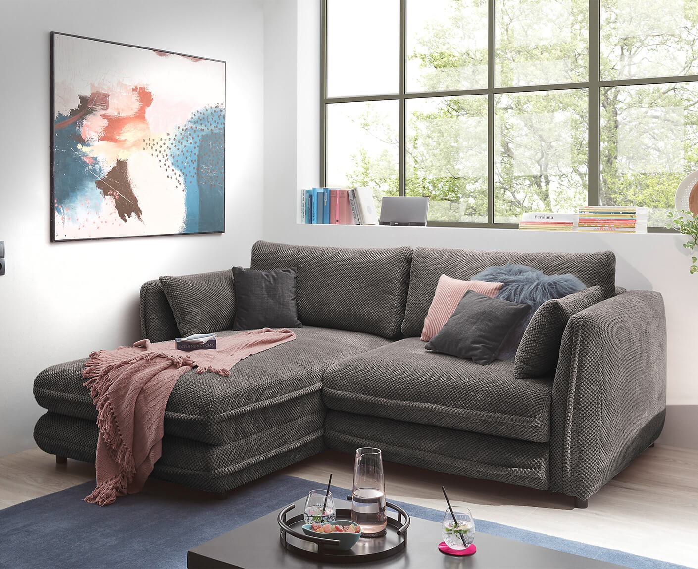 Stanley Ecksofa 240 x 192 cm, mit Schlaffunktion & Bettkasten