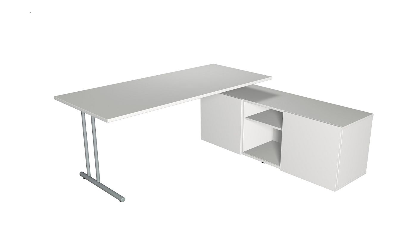 Der Freiformtisch ist aufgrund seiner speziell geformten Tischplatte optimal für Arbeiten am Monitor geeignet. Der Ausbug kann wahlweise links oder rechts sein, da Wendeplatte. Als Winkelarbeitsplatz oder zur Vergrößerung der Arbeitsfläche wählen Sie den Schreibtisch mit Anbau in 3 unterschiedlichen Größen. Ergänzt werden können die Tische durch eine Knieraum-Blende als Sichtschutz oder durch Tischtrennwände in weiß oder Grafit.
