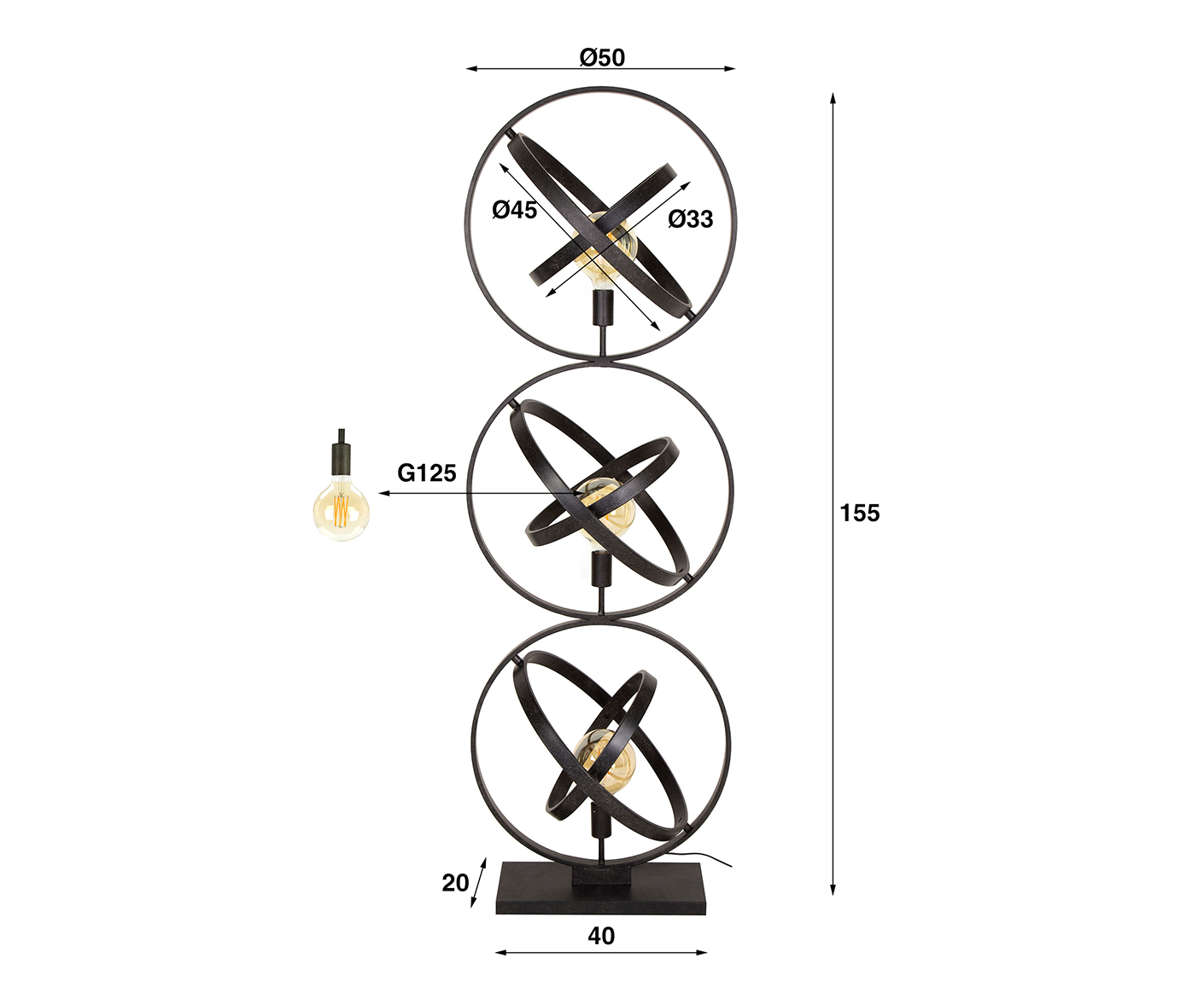 - Stehlampe "Galaxy" aus Metall mit kunstvoller schwarzer Oberfläche