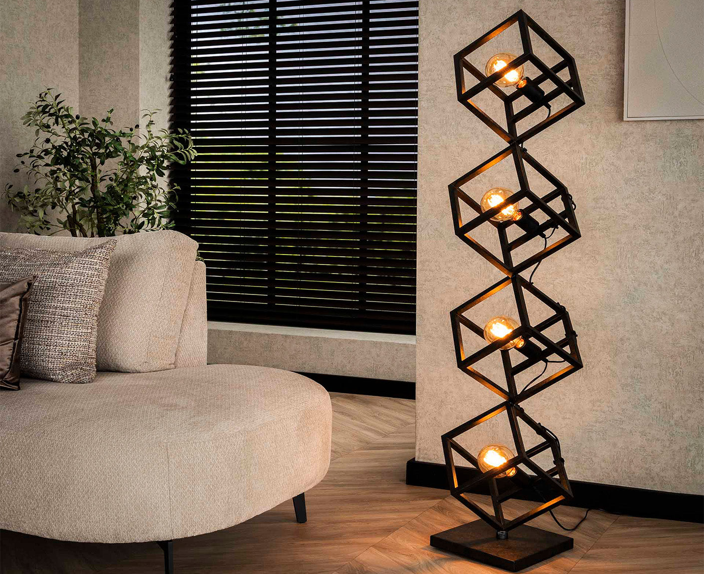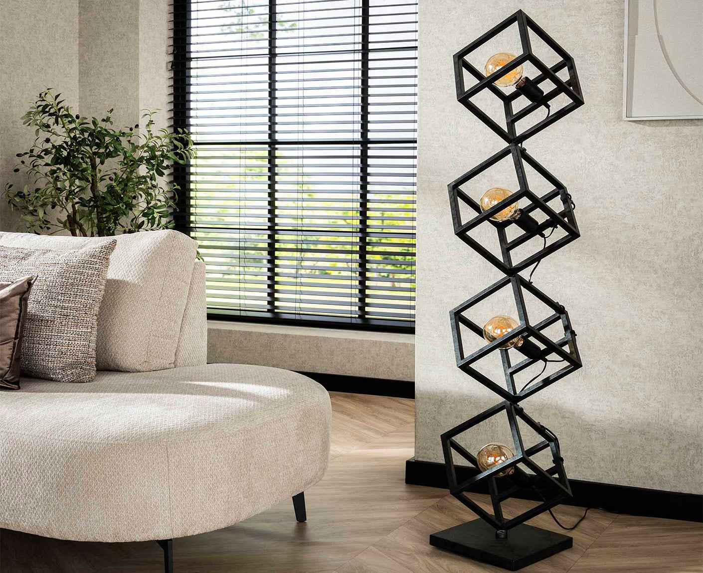 - Stehlampe "Würfel" aus Metall mit Charcoal-Finish