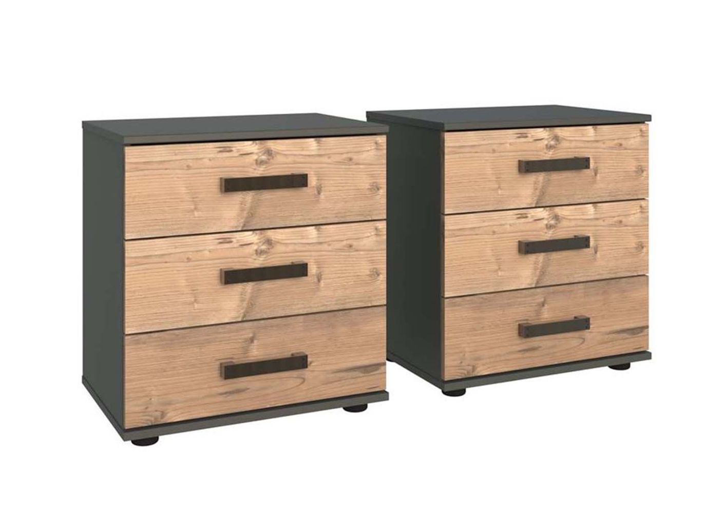 Stockholm 2er Set Nachtkommoden groß Tanne / Grau