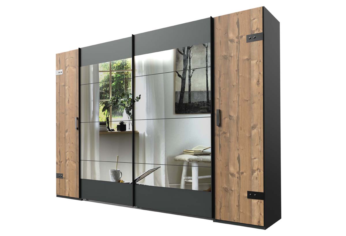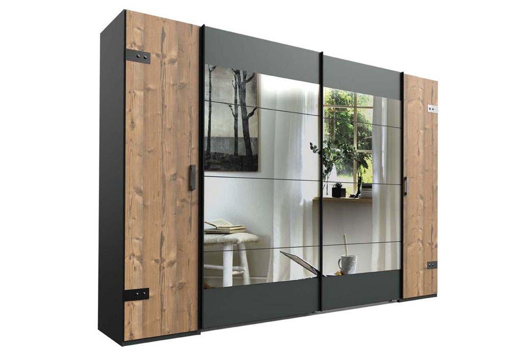 Stockholm Dreh- und Schwebetürenschrank mit Spiegel Tanne / Grau