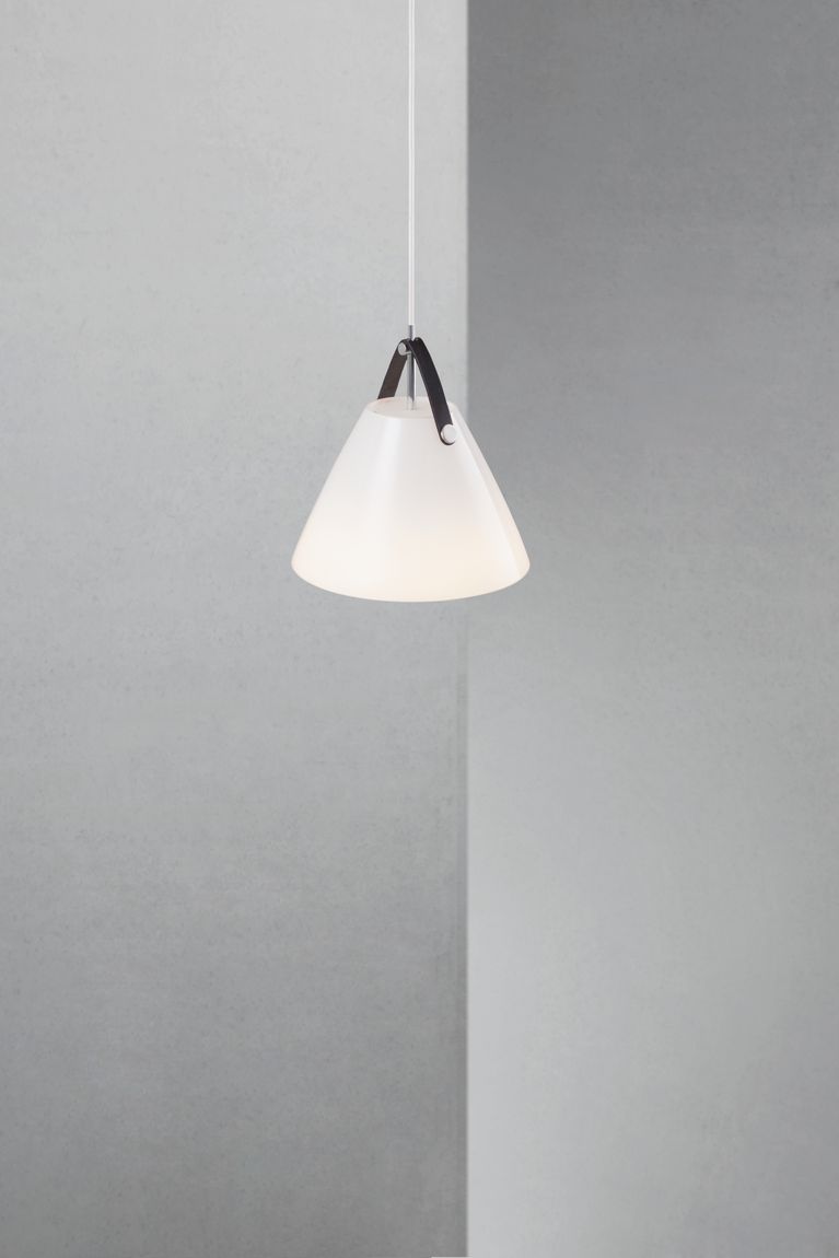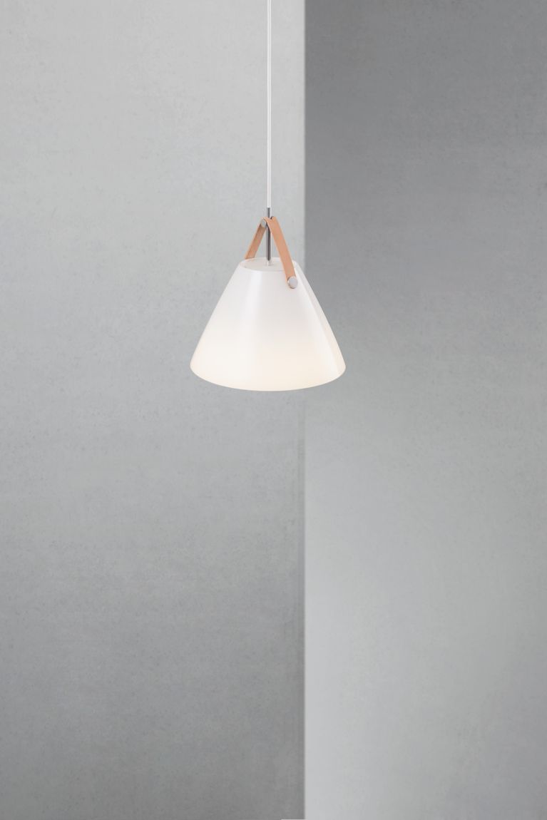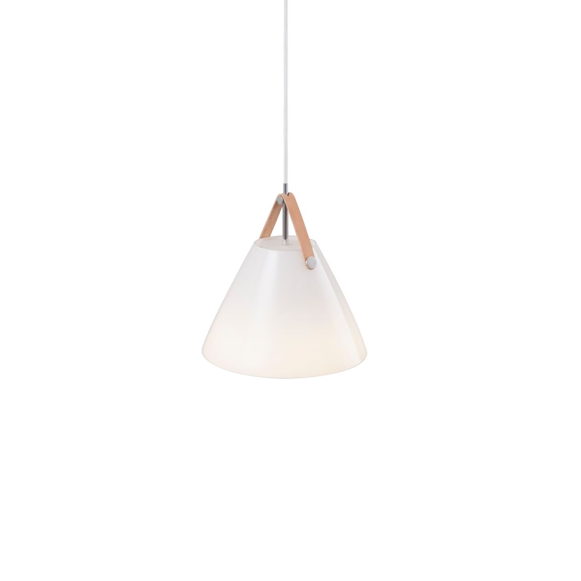 Strap Pendellampe Hängelampe Ø 27 cm Opalweiß/Leder