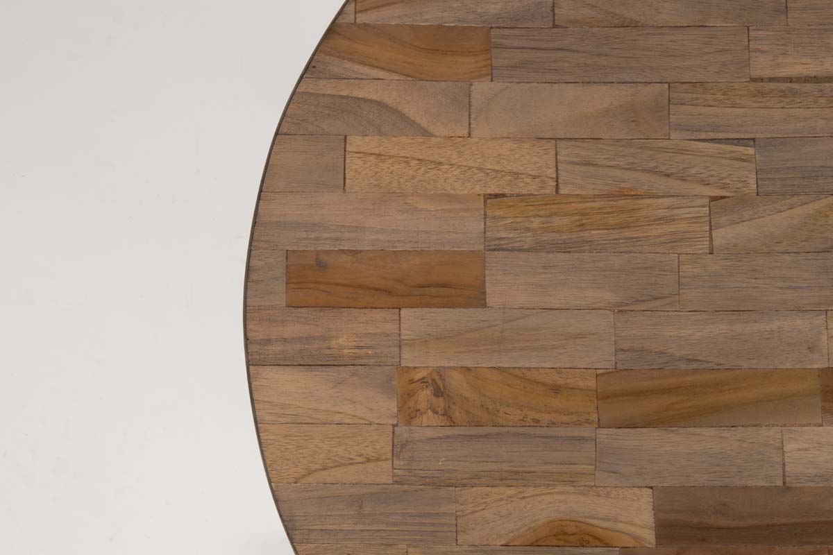 - Recycelte Teak Tischplatte mit Wasserbasis natur lackiert. Stahlrahmen mit antiker schwarz Melaminbeschichtung.