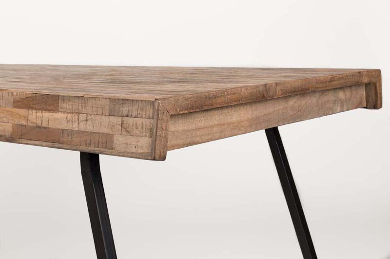 - Recycelte Teak Tischplatte mit Wasserbasis natur lackiert. Stahlrahmen mit antiker schwarz Melaminbeschichtung.