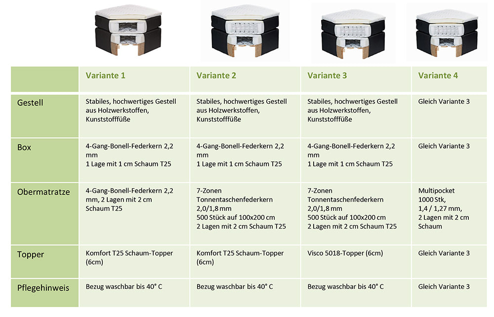 4-Gang-Bonell-Federkern 2,2 mm, 2 Lagen mit 2 cm Schaum