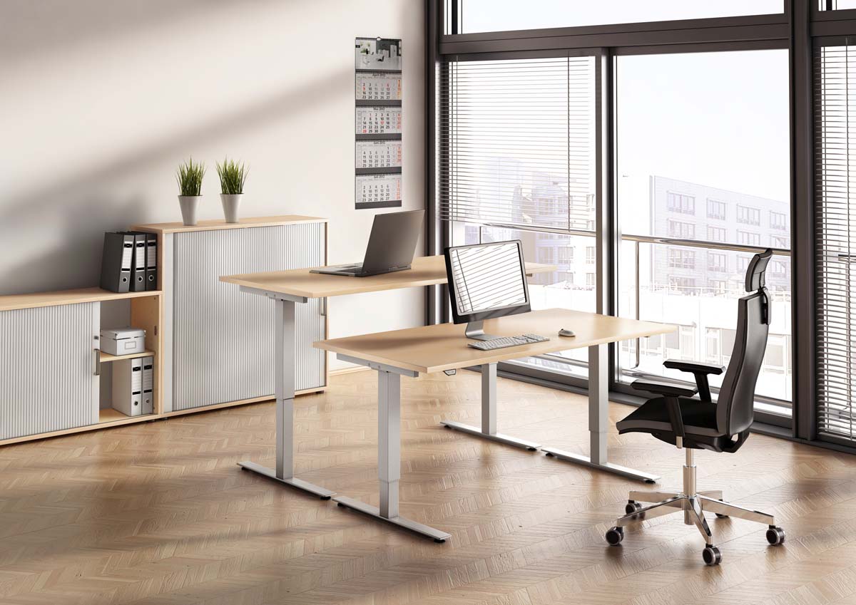 - Schreibtische: 180 x 80 x 72-119 cm (BxTxH)