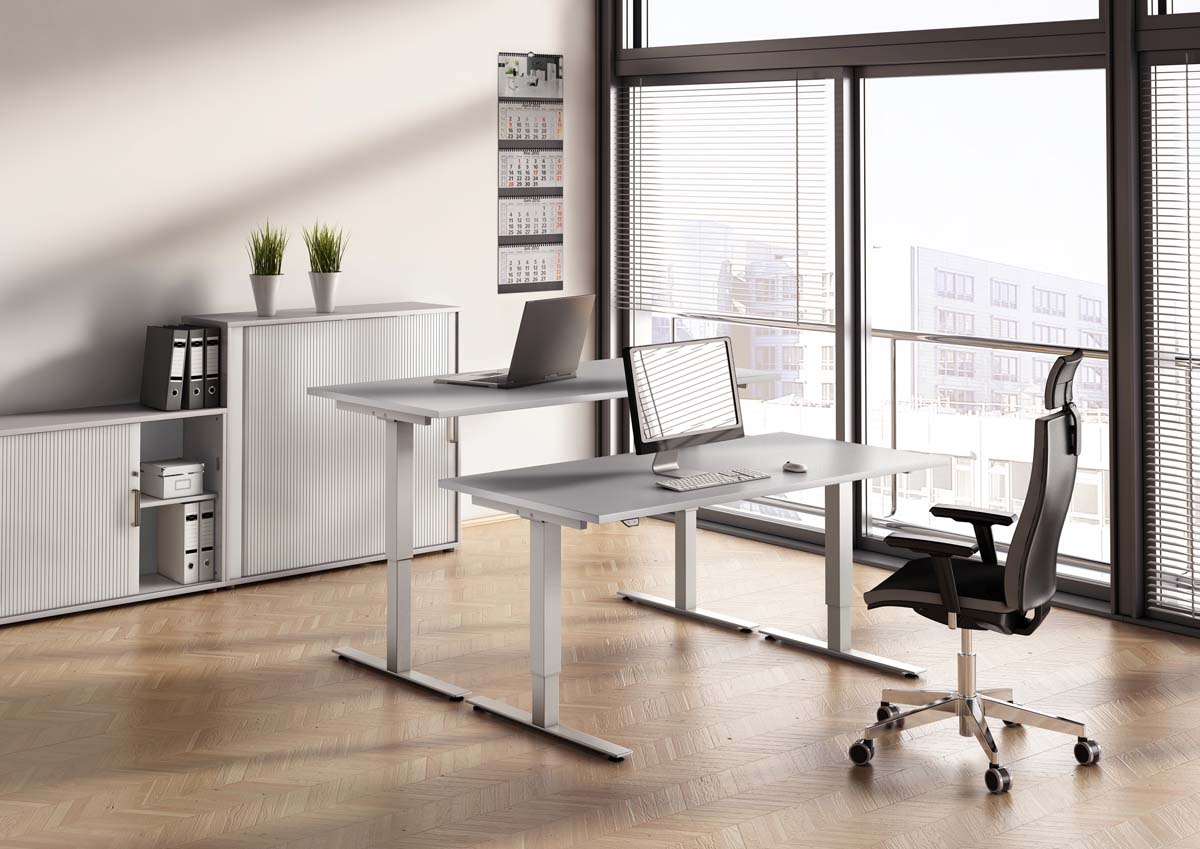 - Schreibtische: 180 x 80 x 72-119 cm (BxTxH)