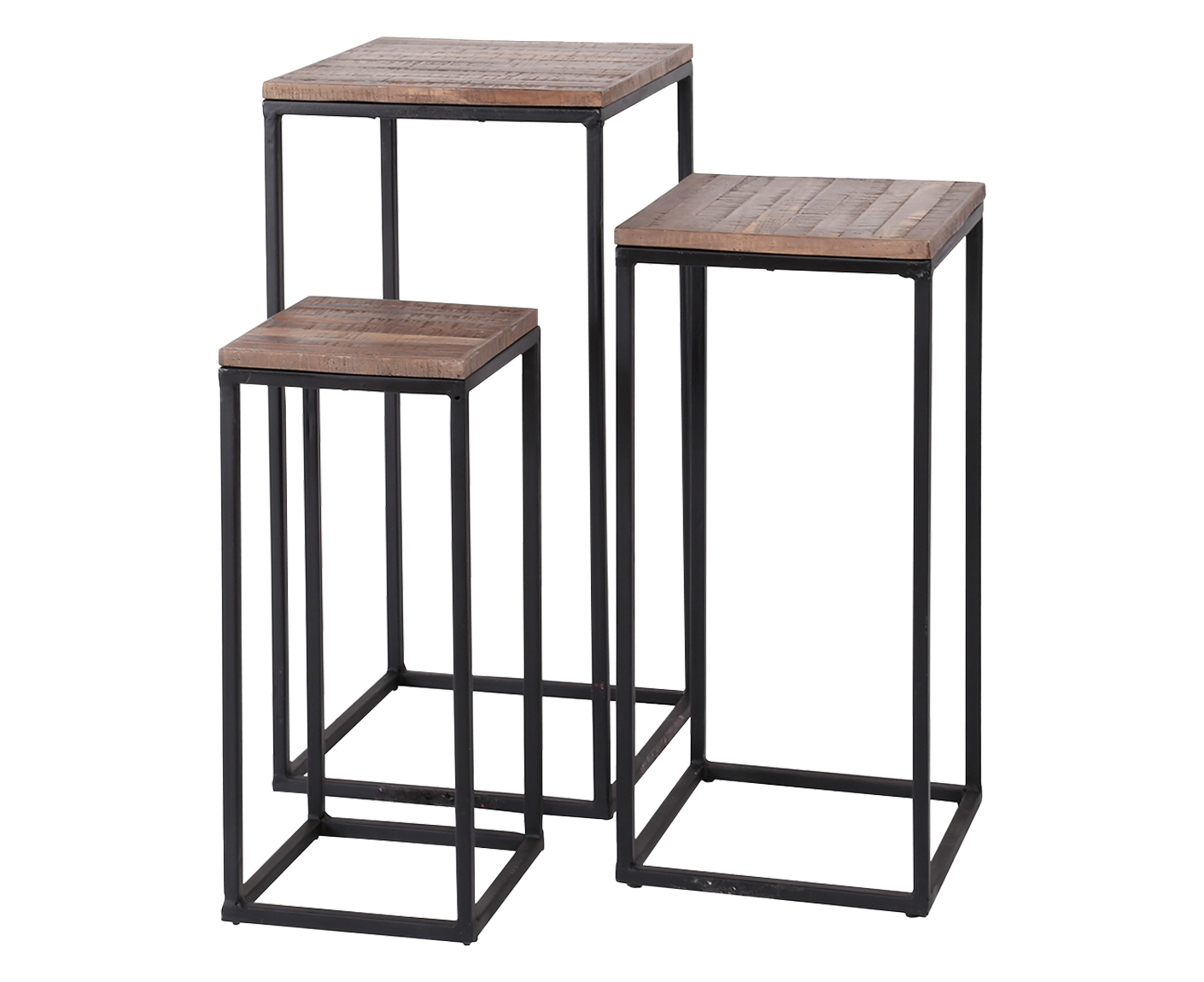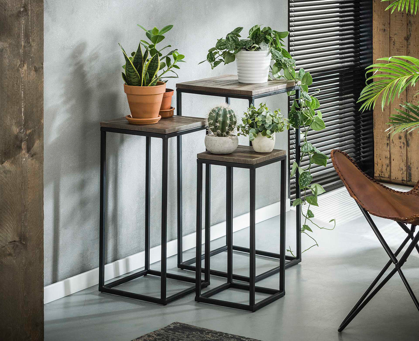 Teca Blumensäule 3er Set 3 Teakholz grau verwaschen