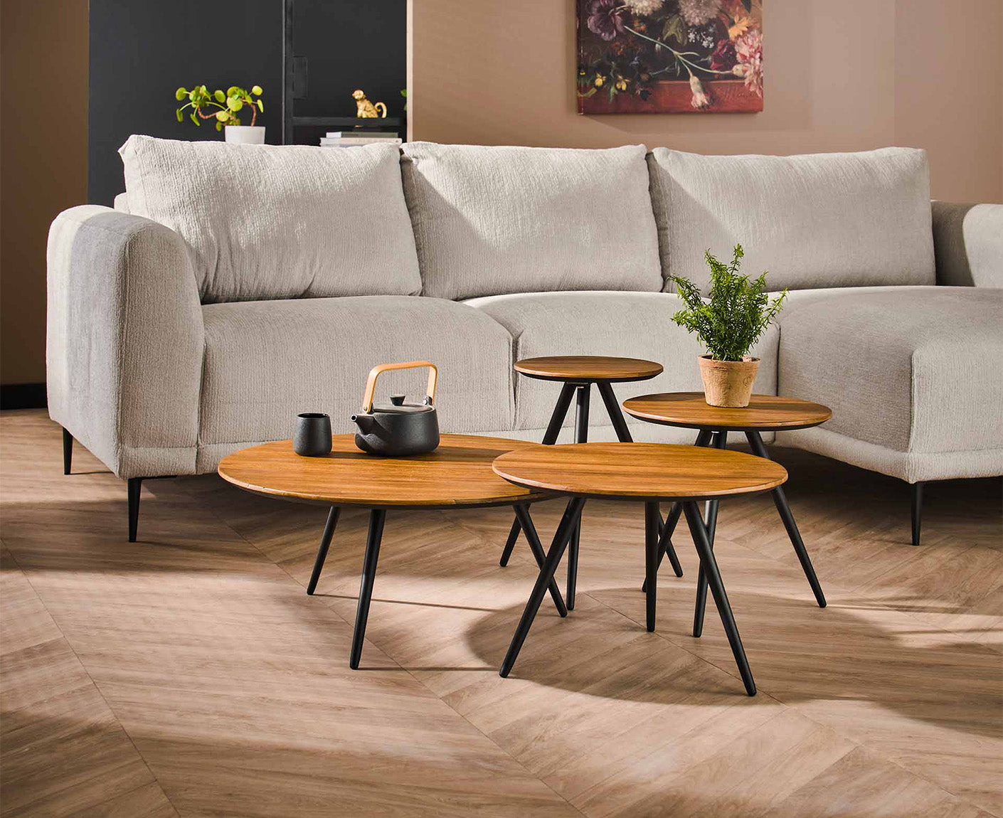 Teca Couchtisch 4er Set Teakholz Massiv