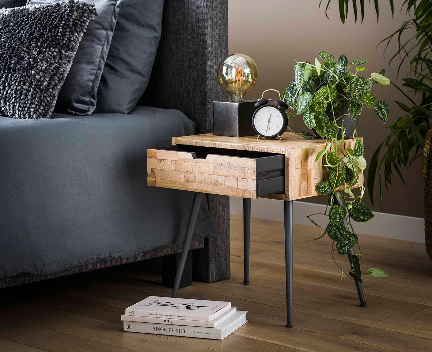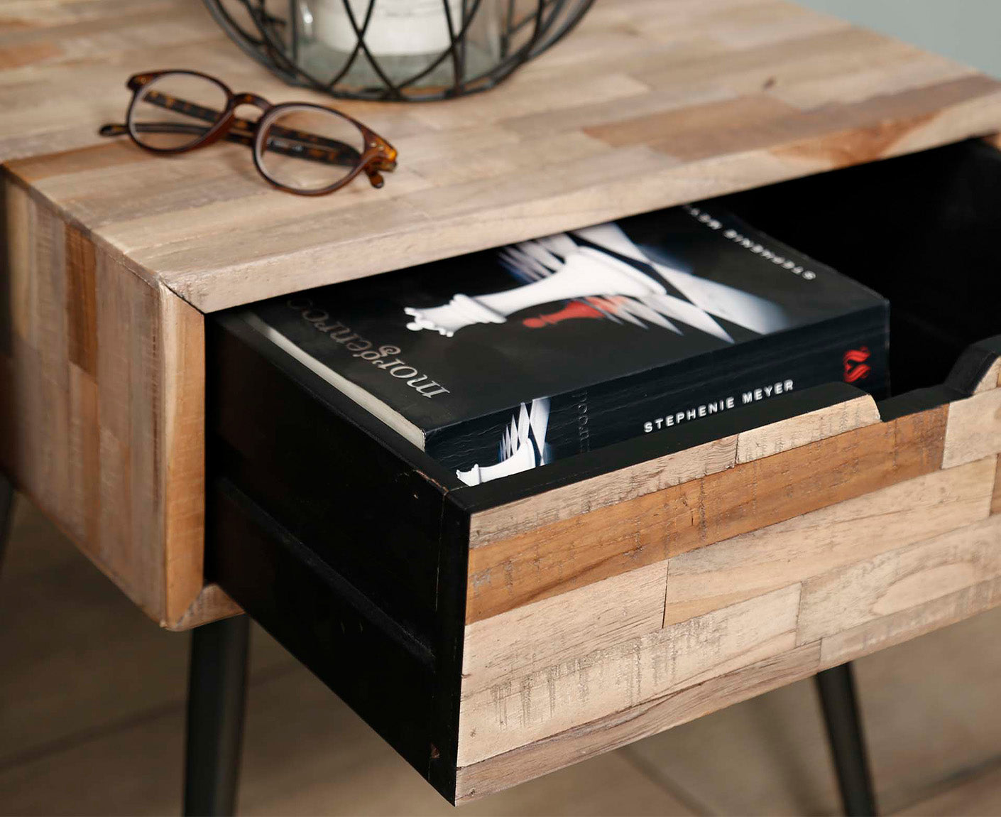 Teca Nachttisch mit Schublade verwittertes Teakholz