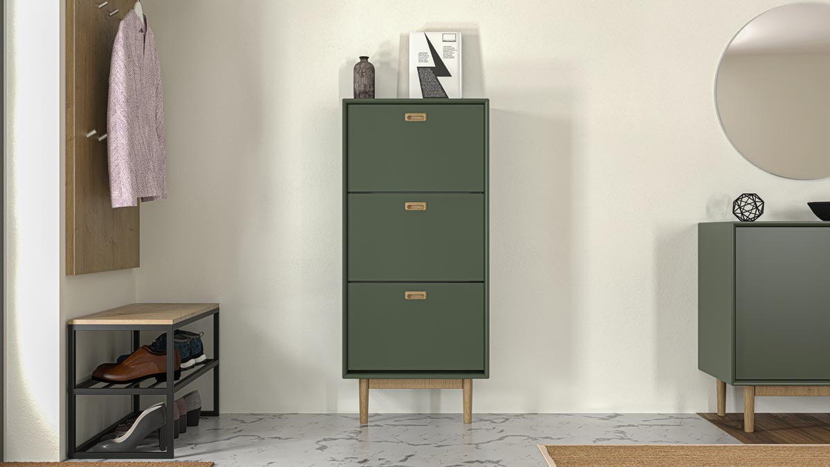 Tenzo Svea Schuhschrank mit 3 Klappen Grün / Eiche