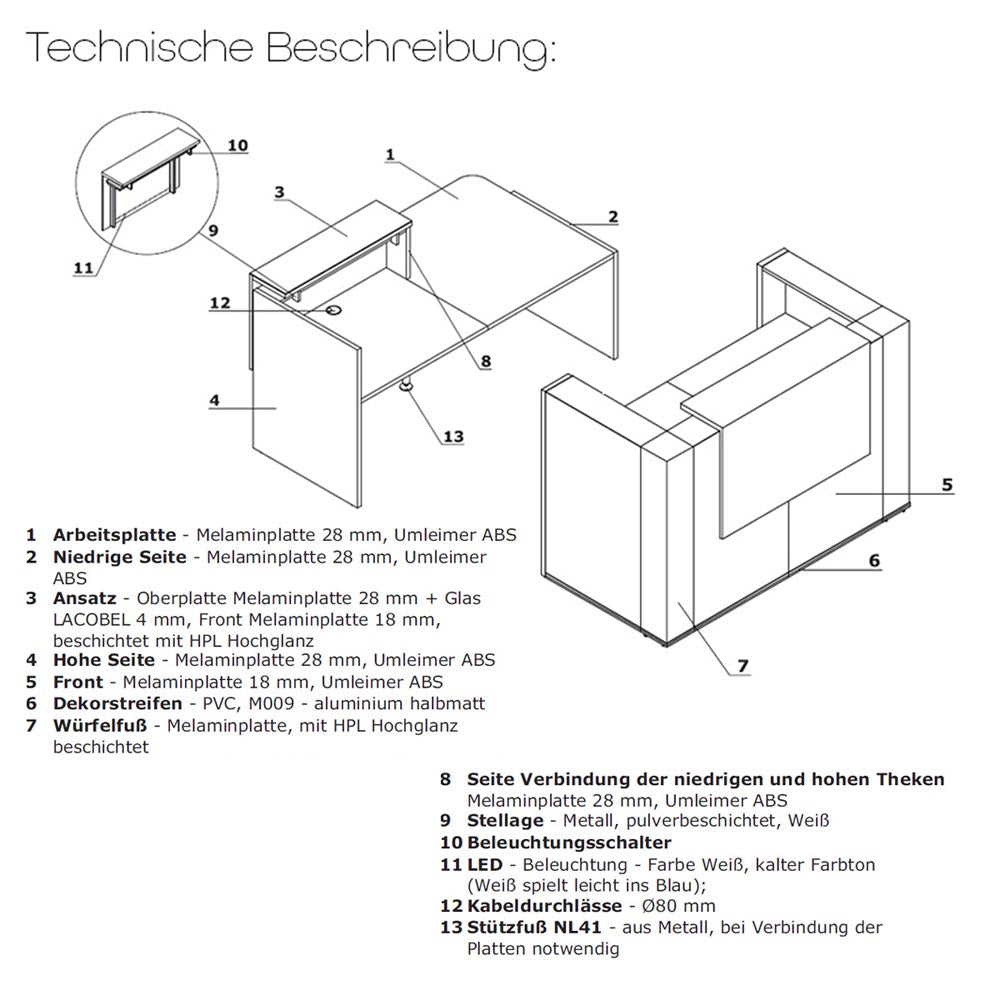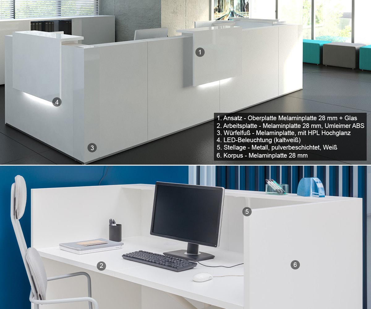 Tera Empfangstheke 6, Größe wählbar, Eckig Polarbirke / Front wählbar