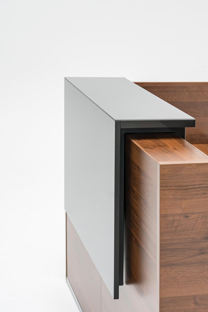 Einzigartig. Tera wird zum Fokus Ihres Eingangsbereiches. Höchste Eleganz, Charme und luxuriöses Design. Tera wird zum Mittelpunkt und wirkt sich professionell aus. Langlebigkeit sowie maximale Qualität. Das zeichnet die Serie aus. Die charakteristische Form lädt Kunden förmlich zu einem Gespräch ein und fesselt die Aufmerksamkeit dieser.