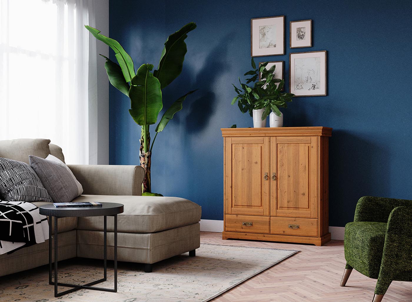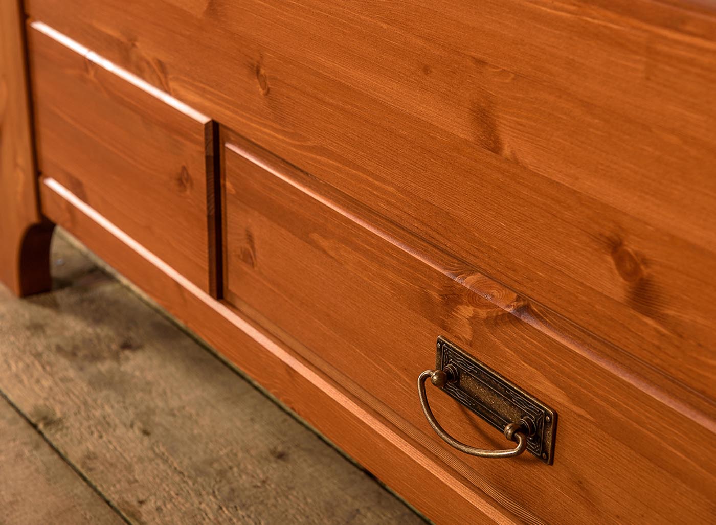 Korpus: Massivholz Finnische Kiefer, Rückseiten und Schubladenböden aus HDF Platten
