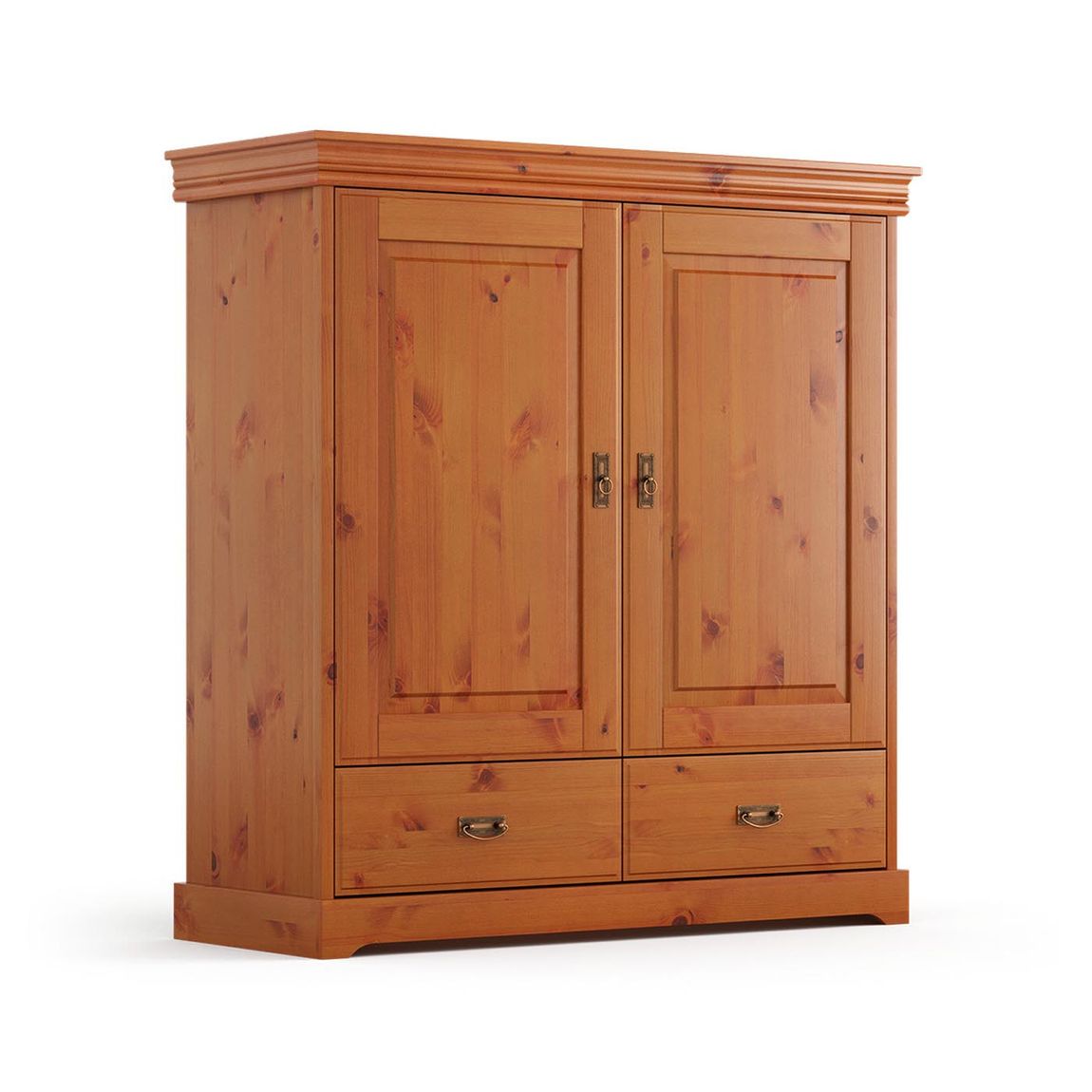 Toskania Massivholz Kleiderschrank 2-türig mit Schubladen 130x142 cm Kiefer, gebeizt