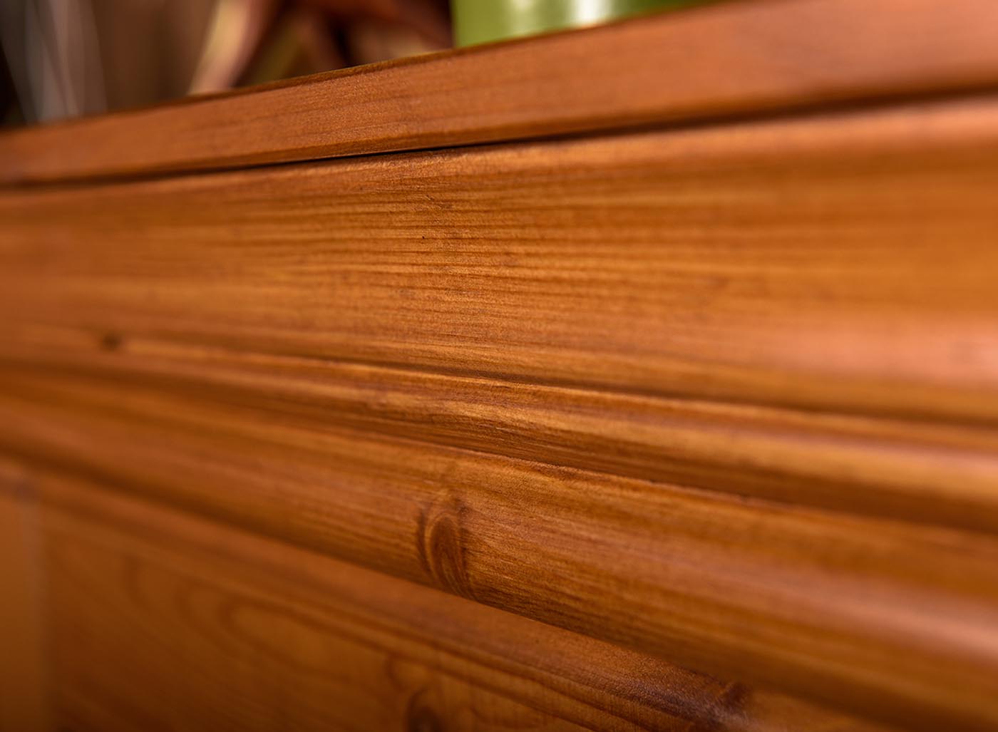 Korpus: Massivholz Finnische Kiefer, Rückseiten und Schubladenböden aus HDF Platten