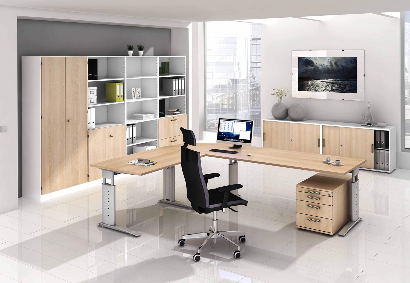 Urbana U-Serie Komplettbüro 10-teilig Weiß / Eiche