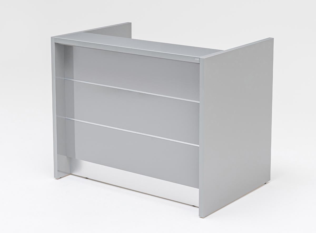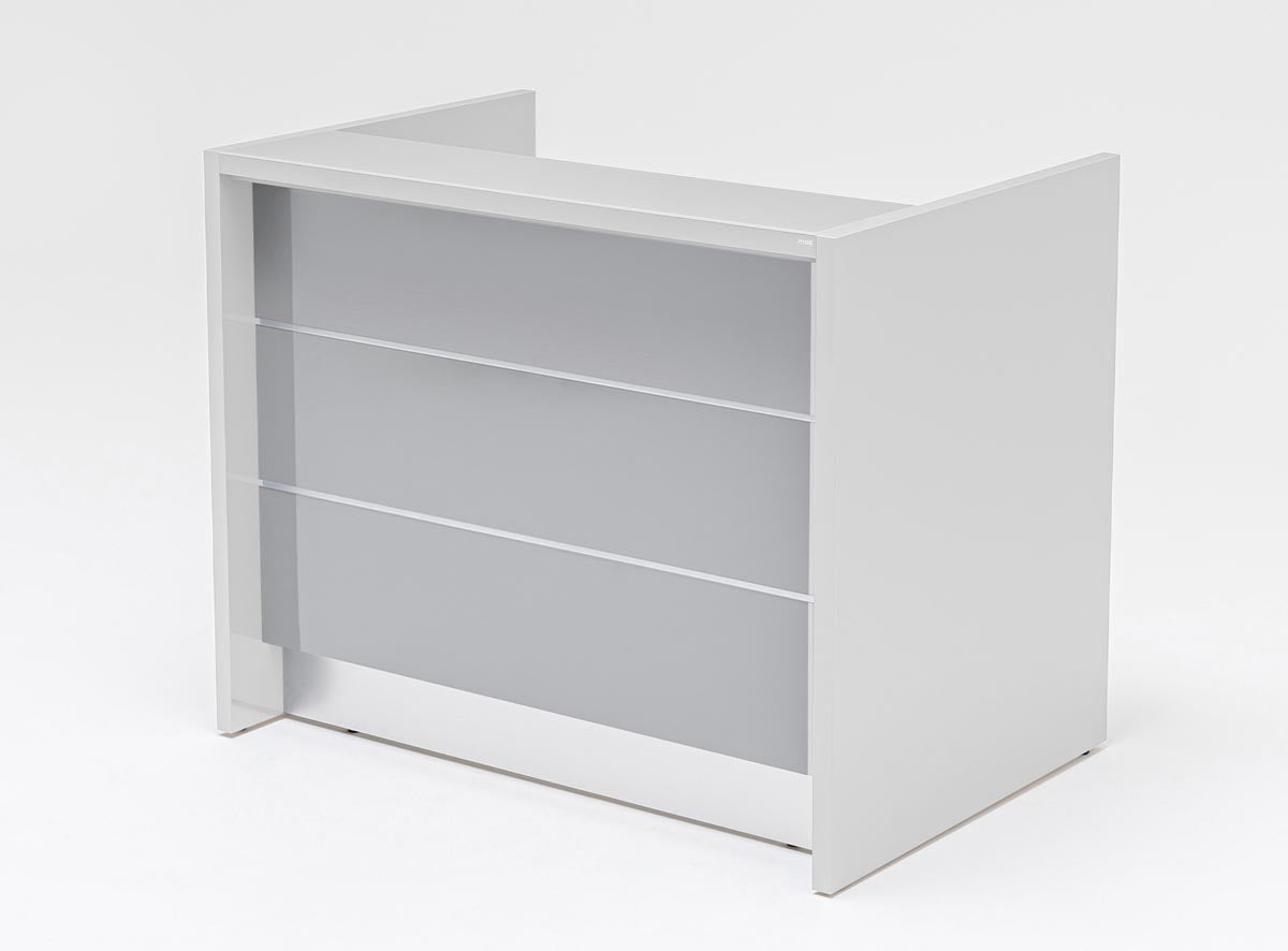 Valde 2 Empfangstheke, gerade, Grau Hochglanz / Größe und Korpus wählbar