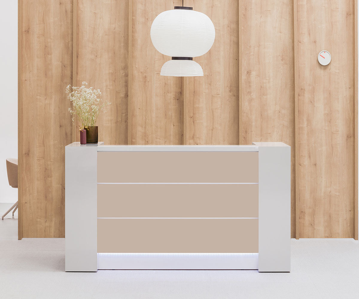 Valde 3 Empfangstheke, mit Endregal gerade, Beige Matt / Größe und Korpus wählbar