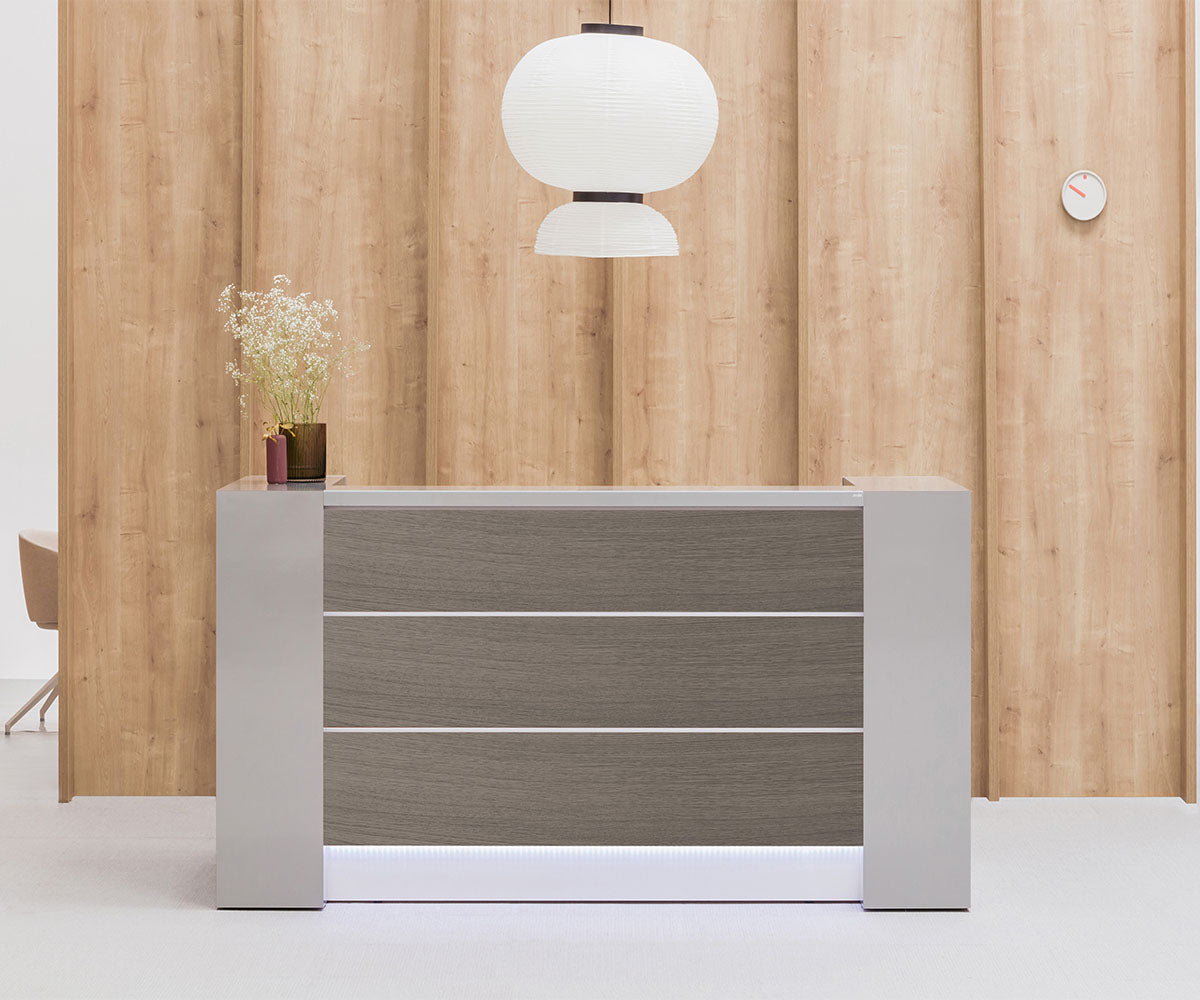 Valde 3 Empfangstheke, mit Endregal gerade, Eiche Grau / Größe und Korpus wählbar