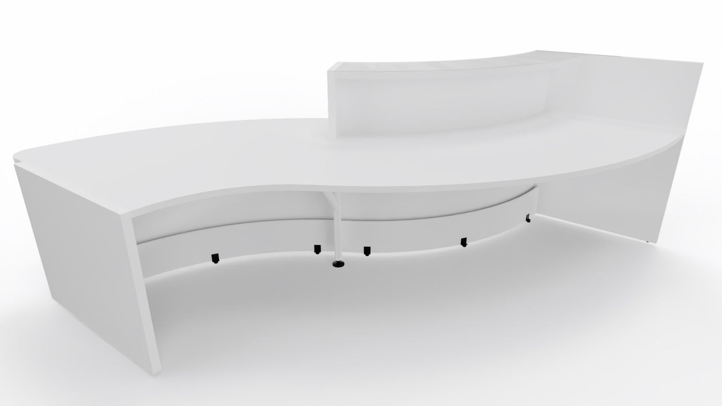 Valde 4 Empfangstheke, gebogen 345x150 cm Weiß Hochglanz / Korpus wählbar
