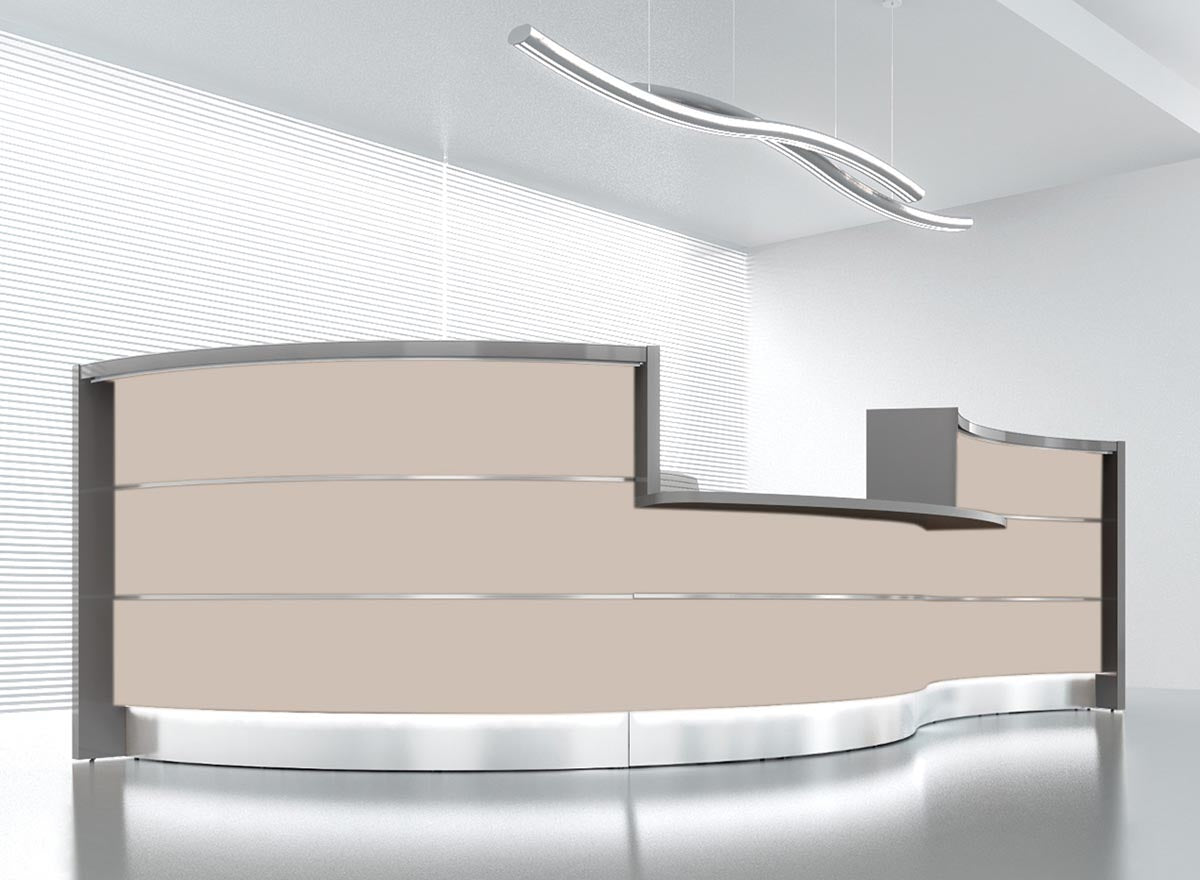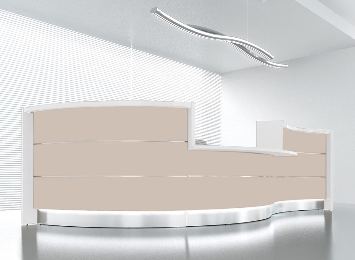 Valde 5 Empfangstheke, gebogen 419x183 cm Beige / Korpus wählbar
