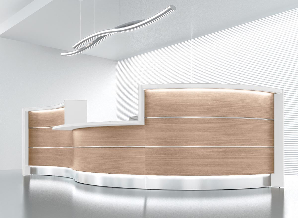 Eine Lösung der besonderen Art bietet Ihnen für Ihren Eingangsbereich die Empfangstheke Valde. Diese aufregende wellenartige geschwungene Empfangstheke ist ein echtes Highlight für Ihr Unternehmen. Entdecken Sie die vielseitigen Möglichkeiten dieses hochwertigen Möbelstücks. Der Typenplan bietet Ihnen eine sehr große Variabilität. Jetzt ist es an Ihnen, sich individuell einzurichten. Wir bieten Ihnen dazu unser modulares Möbelsystem, Top-Qualität und trotz allen Superlativen eine bezahlbare Lösung.