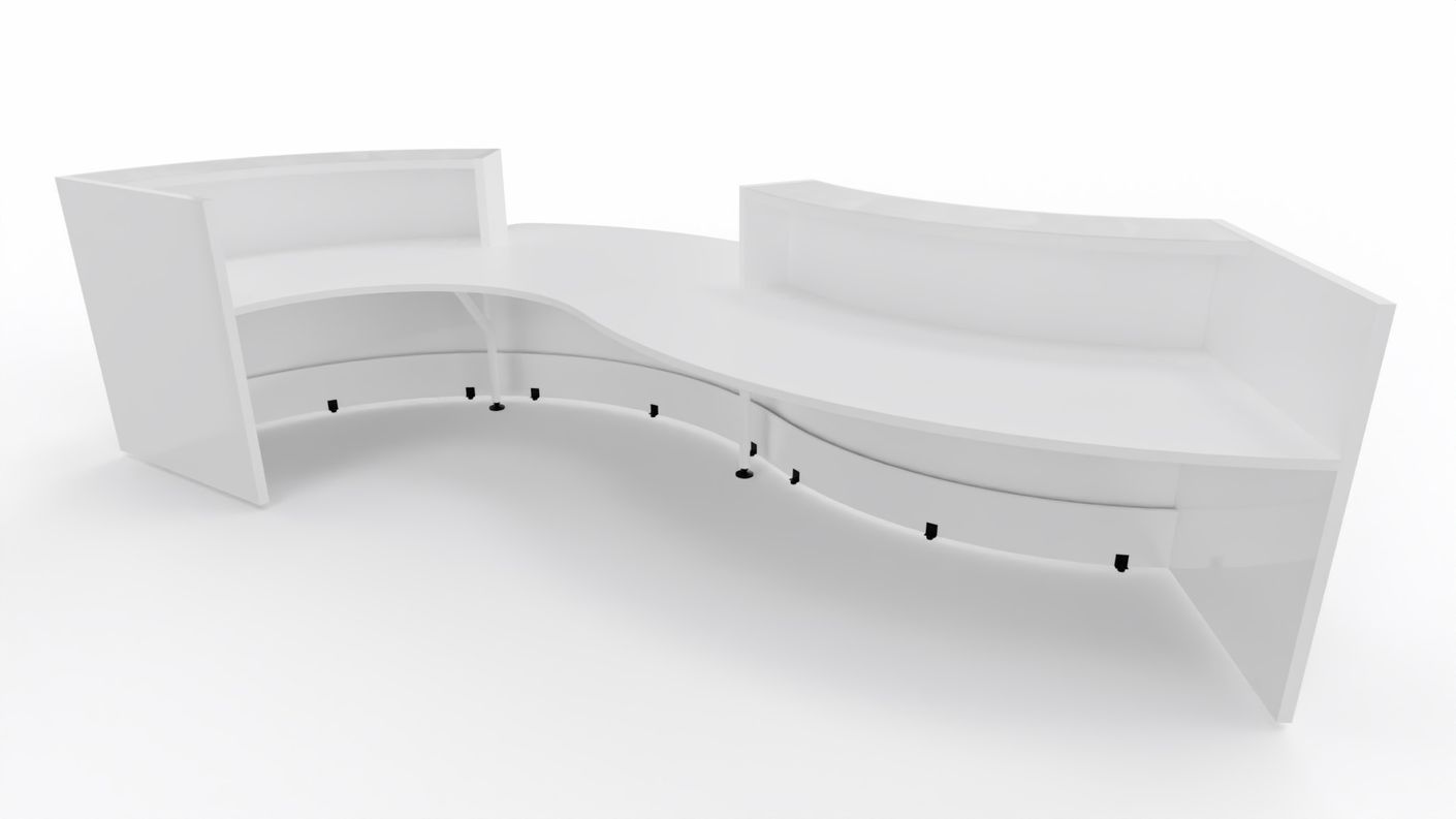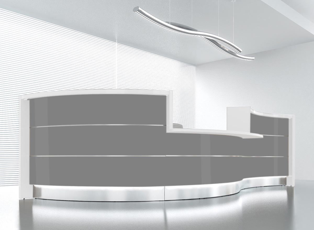 Valde 5 Empfangstheke, gebogen 419x183 cm Grau Hochglanz / Korpus wählbar