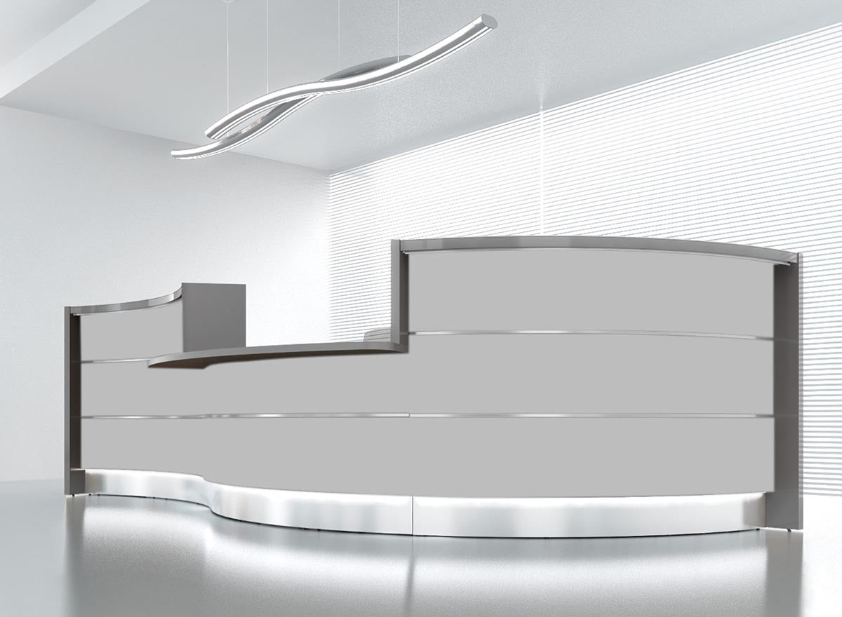 Eine Lösung der besonderen Art bietet Ihnen für Ihren Eingangsbereich die Empfangstheke Valde. Diese aufregende wellenartige geschwungene Empfangstheke ist ein echtes Highlight für Ihr Unternehmen. Entdecken Sie die vielseitigen Möglichkeiten dieses hochwertigen Möbelstücks. Der Typenplan bietet Ihnen eine sehr große Variabilität. Jetzt ist es an Ihnen, sich individuell einzurichten. Wir bieten Ihnen dazu unser modulares Möbelsystem, Top-Qualität und trotz allen Superlativen eine bezahlbare Lösung.