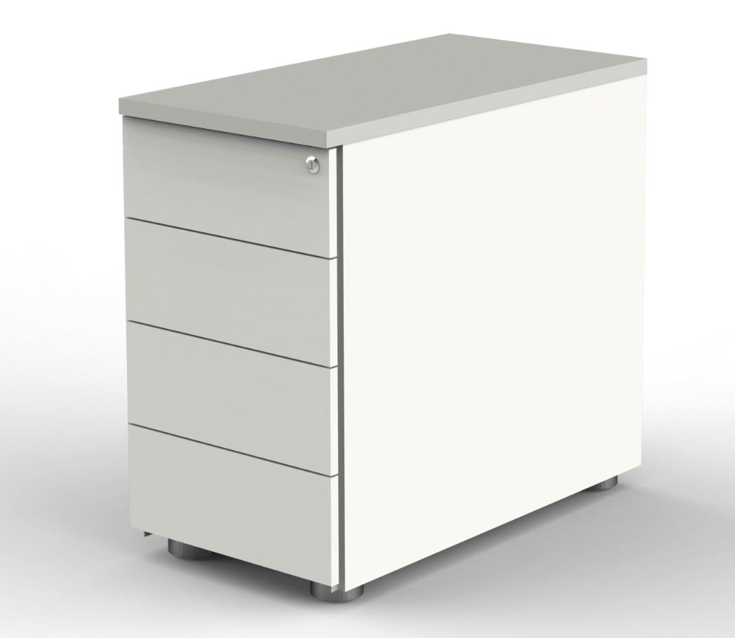 VARI Anstellcontainer mit 4 Schüben, 80 cm tief, Weiß / Lichtgrau