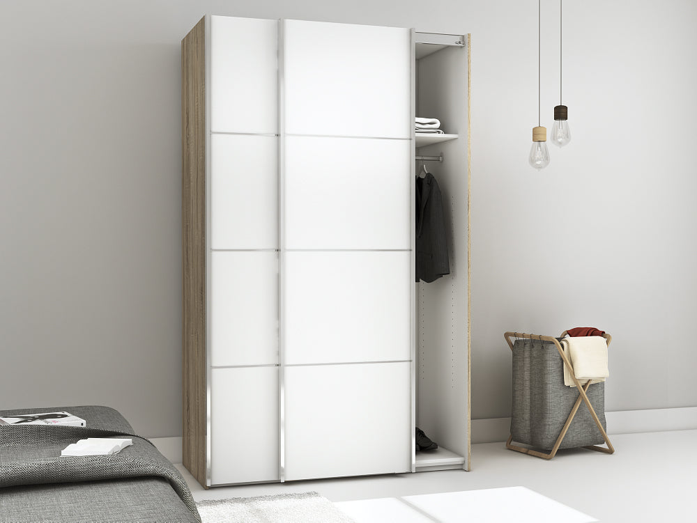 Verona Schiebetürenschrank 122 x 202 cm Eiche Struktur / Weiß