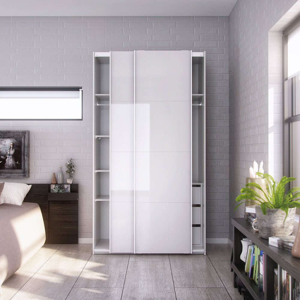 Verona Schiebetürenschrank 122 x 220 cm Weiß Hochglanz