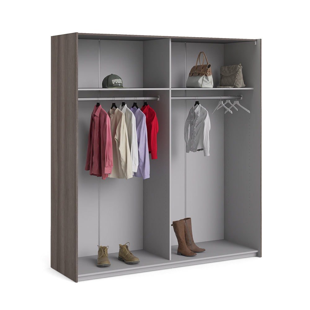 - links und rechts je 1 fester Boden und 1 Kleiderstange