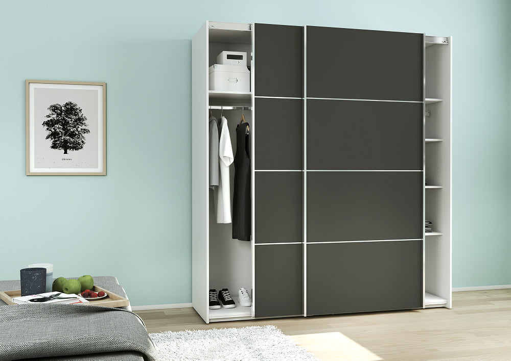 Verona Schiebetürenschrank 182 x 202 cm Weiß / Grau