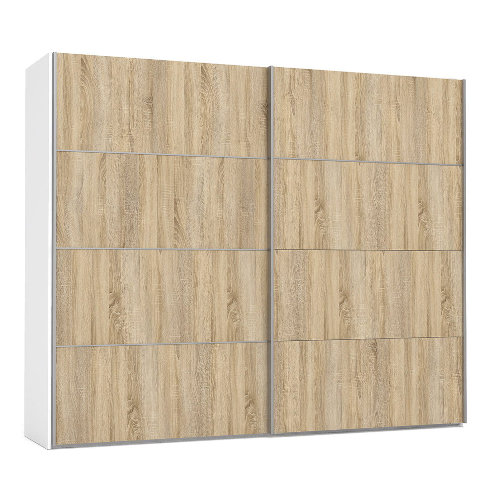 Verona Schiebetürenschrank 243 x 202 cm Weiß / Eiche Struktur