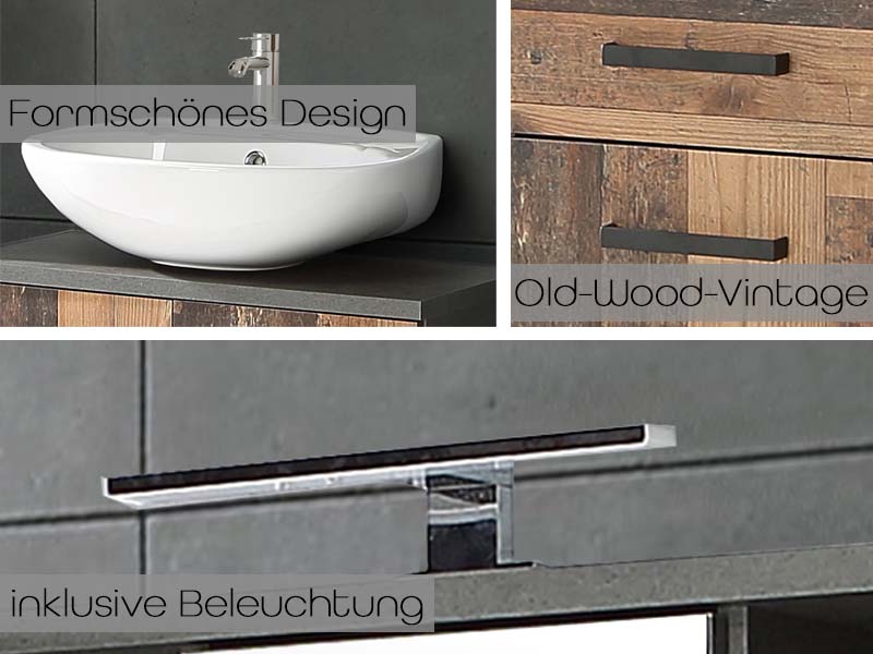 VILNIUS Spiegelschrank 1-türig inkl. Beleuchtung Old-Wood Vintage / Dunkelgrau