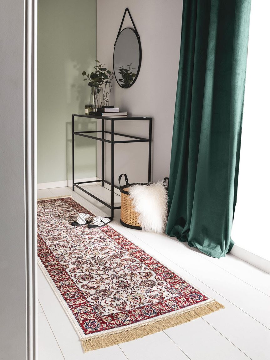 Viskoseteppich Läufer Lori 67x210 cm Beige / Rot