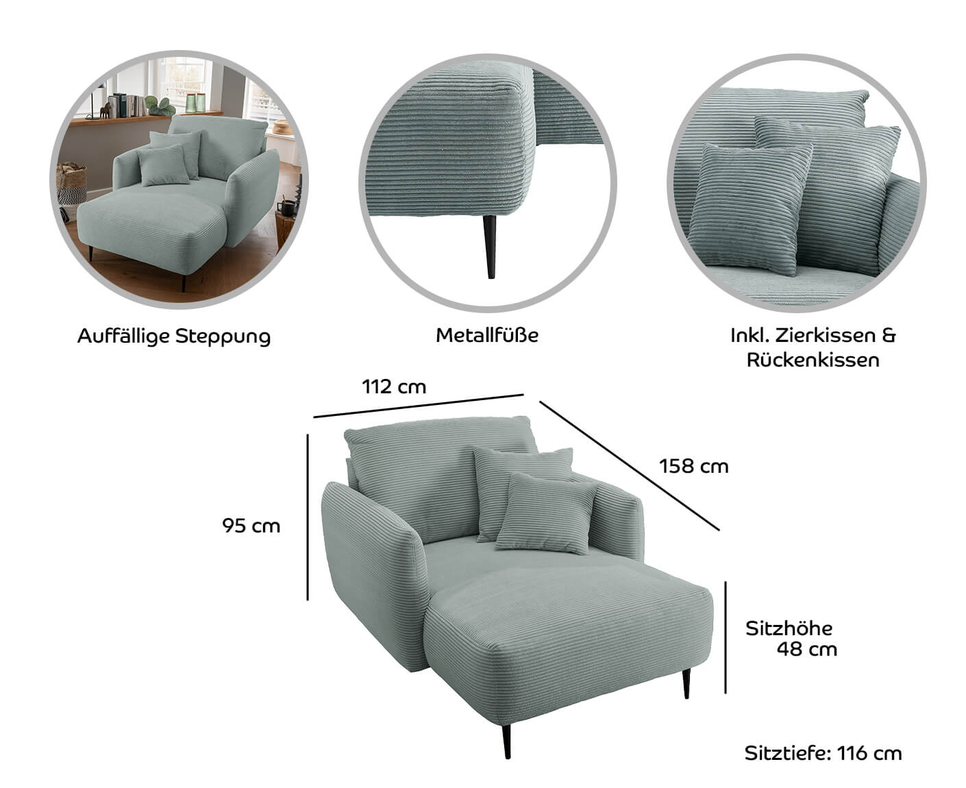 Sitztiefe: ca. 113 cm