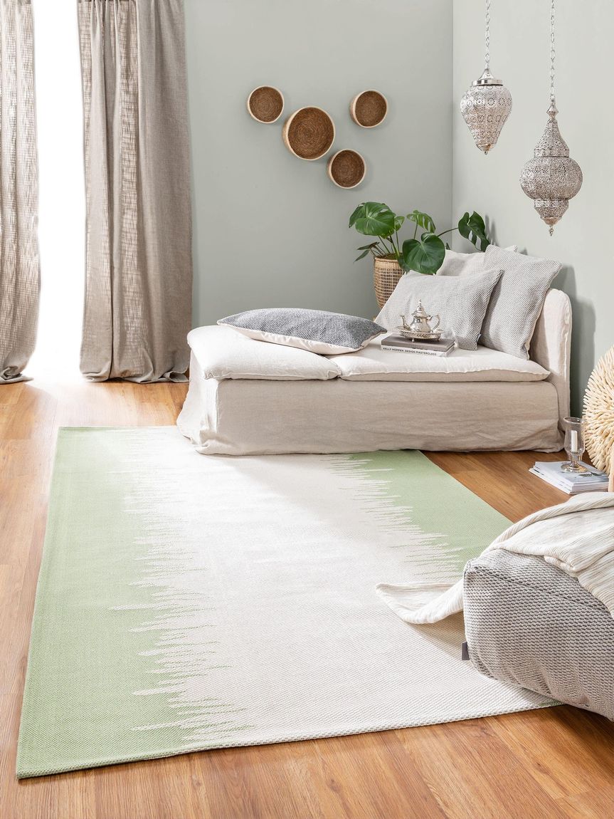 Waschbarer Baumwollteppich Cooper Creame / Grün